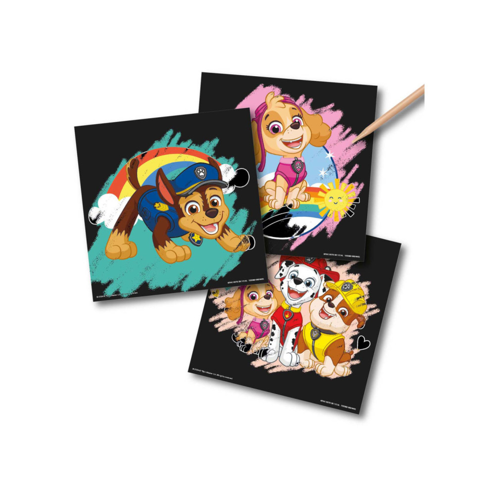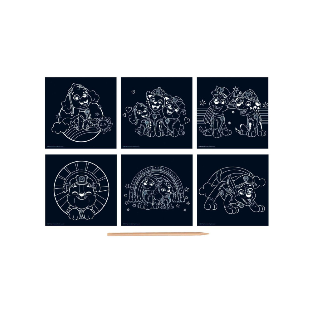Kraskaarten met PAW Patrol afbeelding. Geschikt voor kinderen vanaf 3 jaar. De set bevat 6 afbeeldingen en een kraspen.