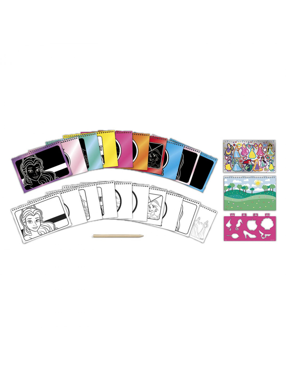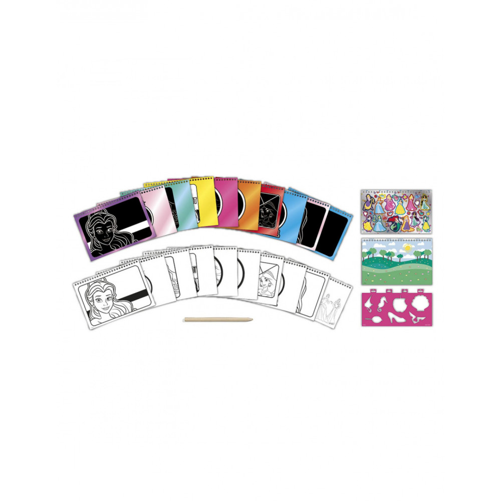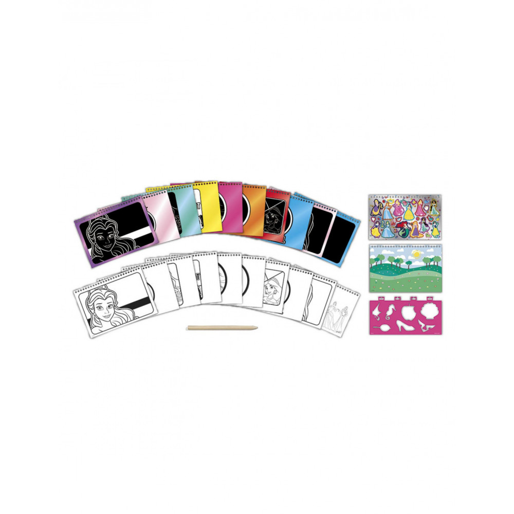 Een leuk Disney Princess activiteiten boekje met 10 kraskaarten, kraspen, 11 kleurplaten, een stencil, stickers en achtergrond. Gebruik de achtergrond voor je stickers of om je kleurplaat op te vrolijken.