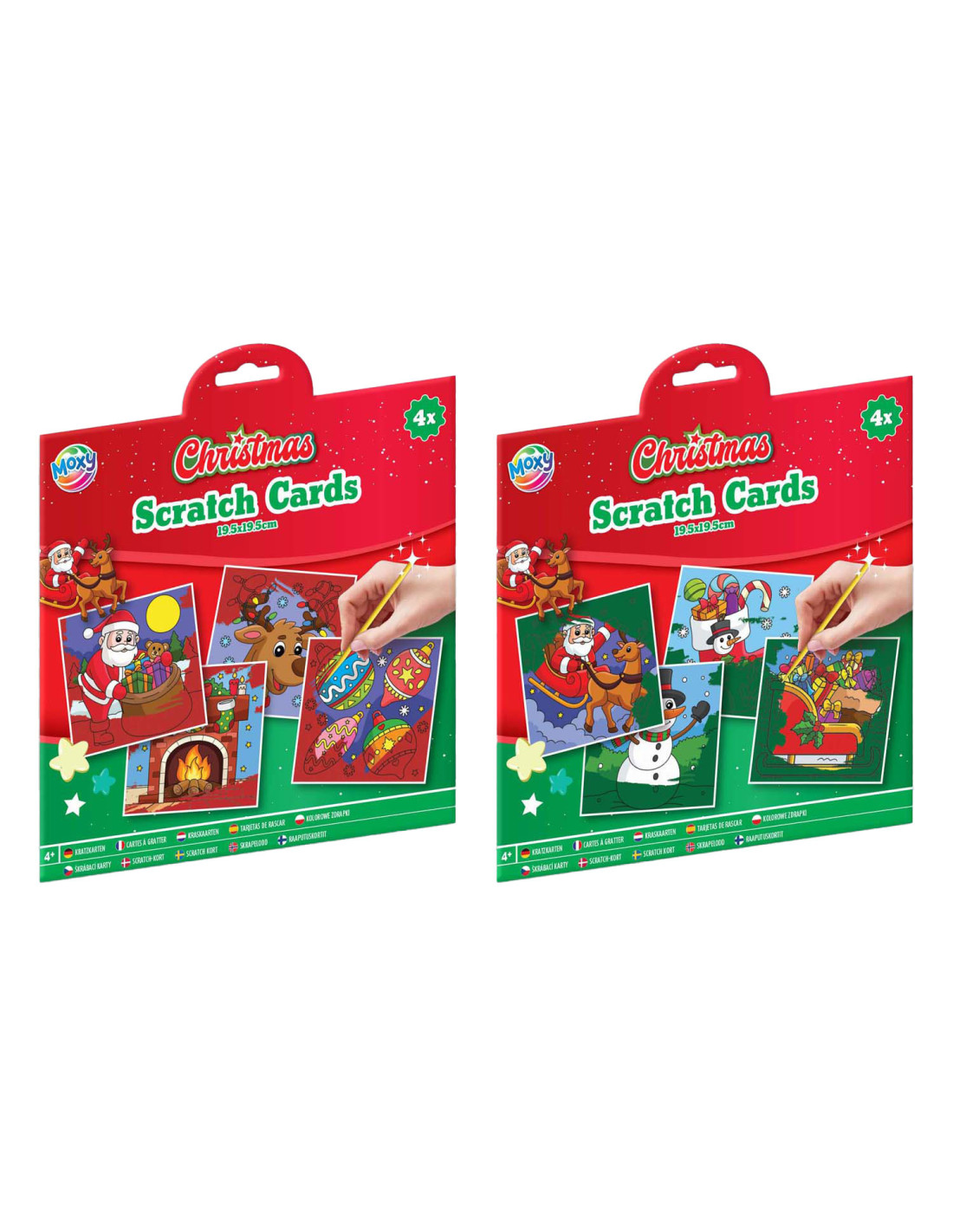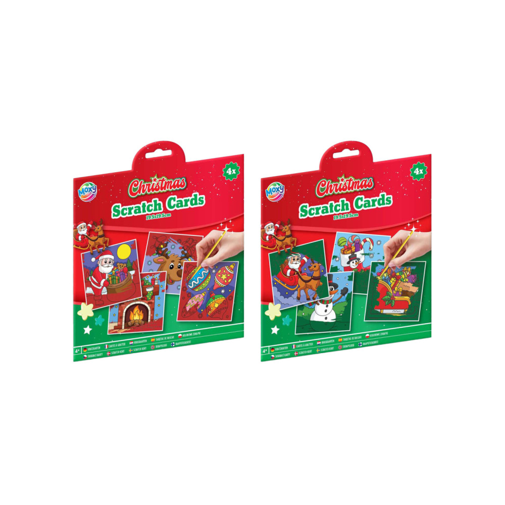 Kraskaarten met kerstafbeelding. In de verpakking zitten 4 kaarten die 19,5 x 19,5 cm groot zijn en een kraspen. Geschikt voor kinderen vanaf 4 jaar.