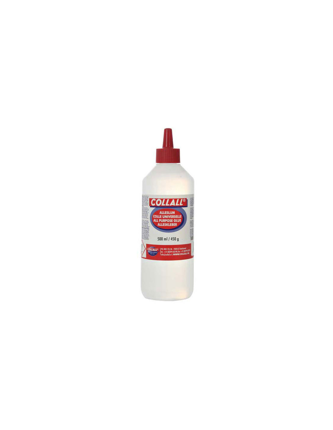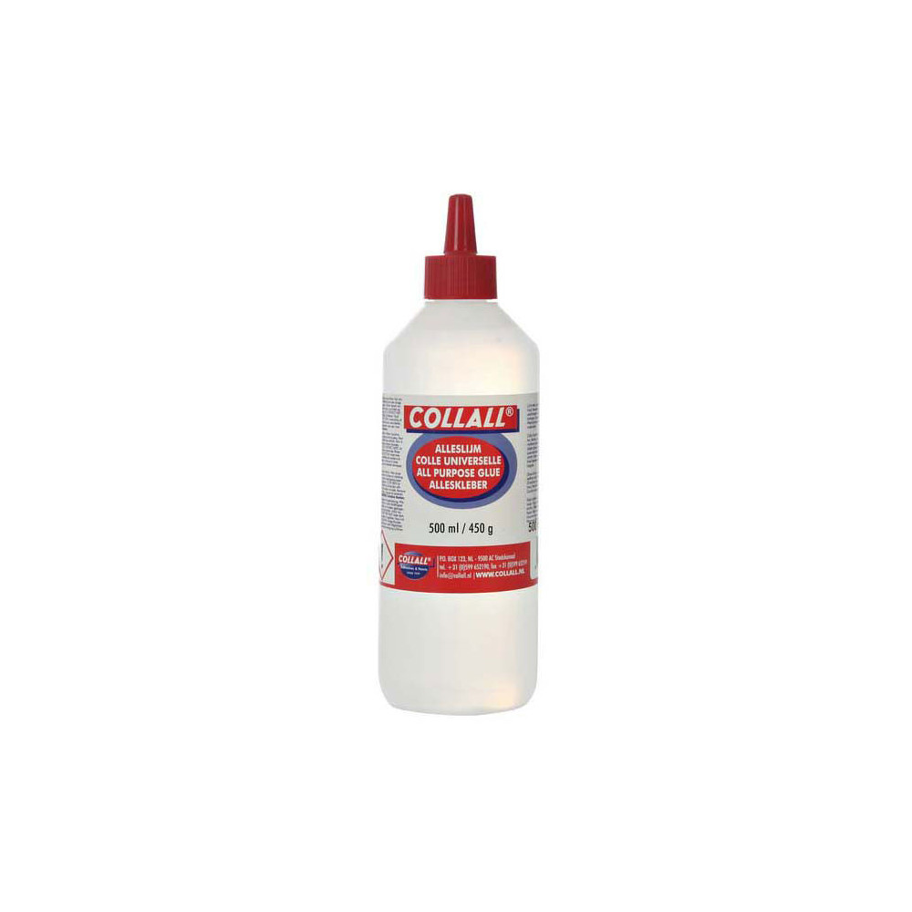 Collall Alleslijm is een sterke transparante sneldrogende lijm, voor verlijming van papier, karton, kurk, hout, textiel, glas, steen, keramiek, leer en diverse kunststoffen. Voor de grootverbruikers in een handige 500 ml fles.