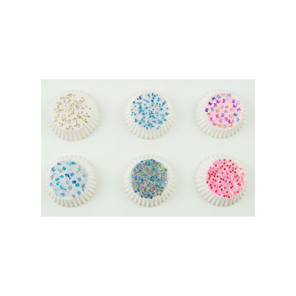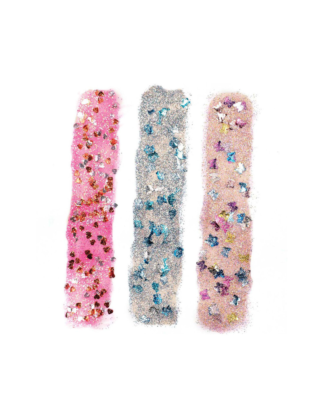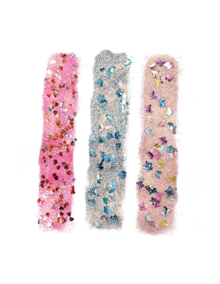 Deze confetti glitter lijm bevat leuke confettivormen zoals sterren, harten, vlinders en meer! In het roze, blauw en geel!