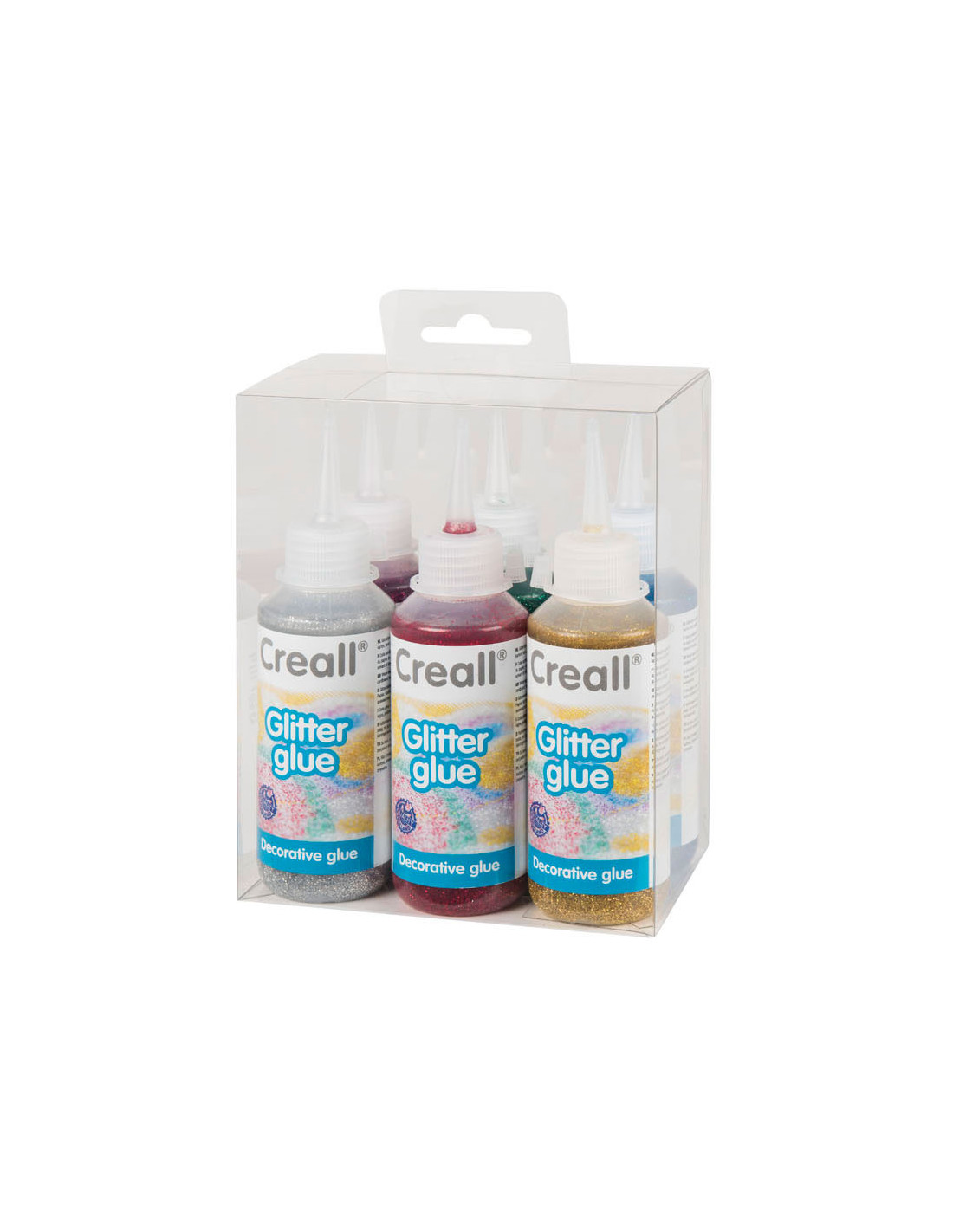 De set bevat 6 verschillende kleuren lijm, namelijk: groen, roze, blauw, geel, rood en wit.