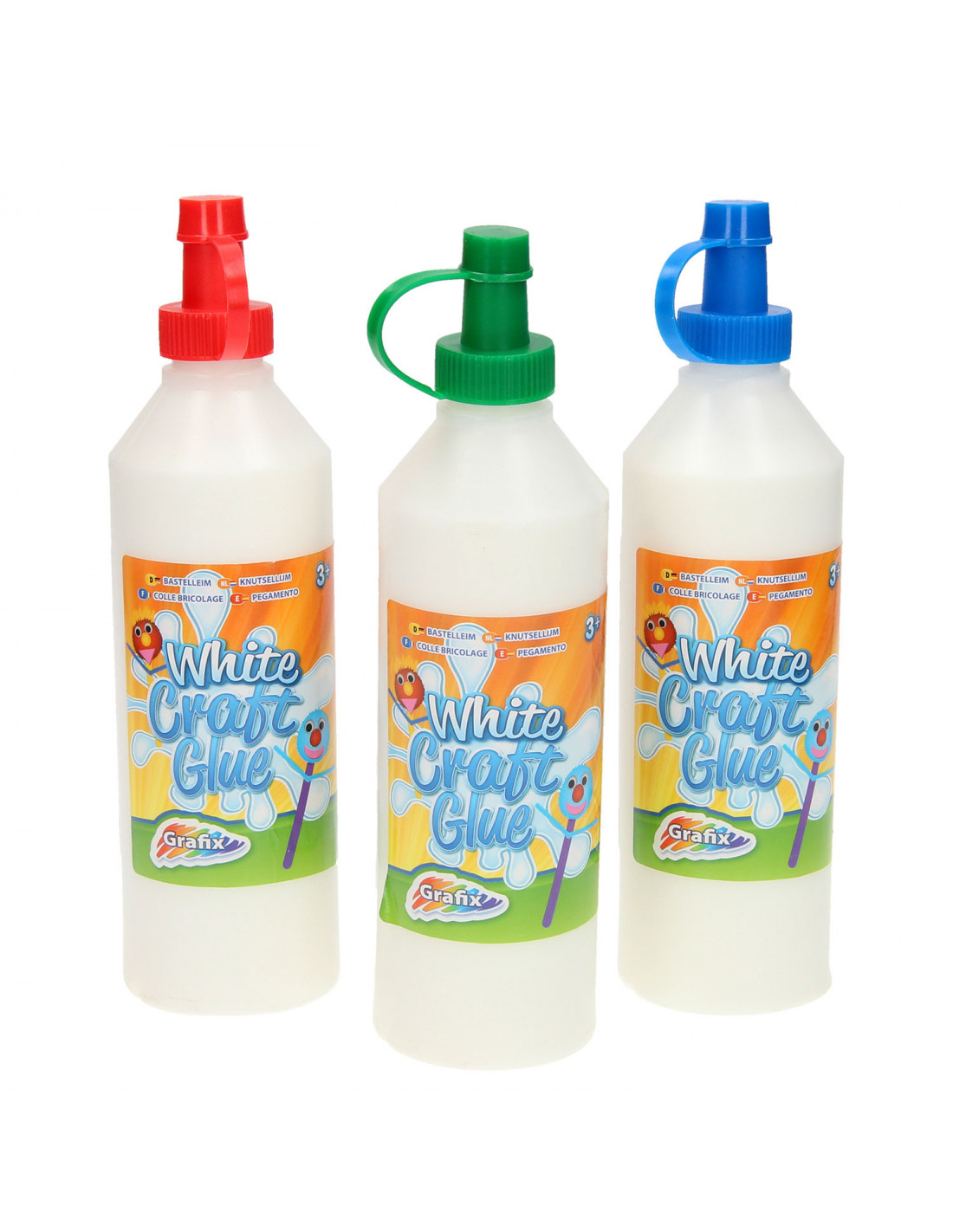Fles witte knutsellijm met handige doseerdop. De lijm heeft een inhoud van 250 ml.