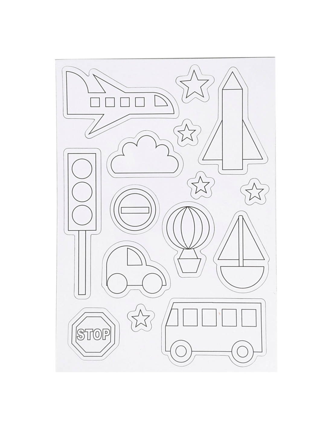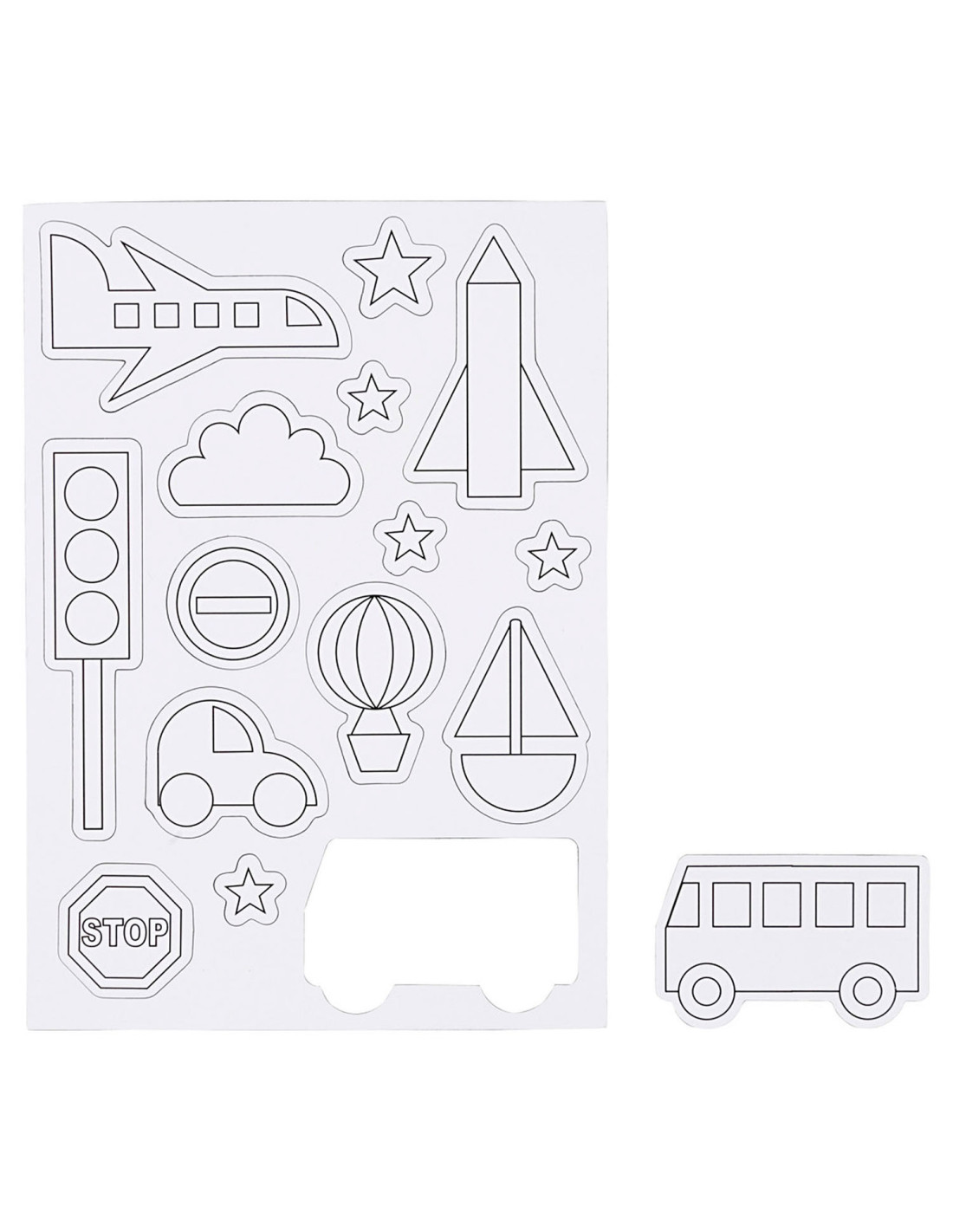 Kleur je eigen magneet met deze set! In de set zit een magneet vel van A5 formaat met geponste magneten in de vorm van voertuigen, verkeersborden en sterren. Kleur de magneten in en ze zijn klaar voor gebruik! Nu hoef je alleen nog maar een mooi plekje op de koelkast of op het magneetbord uit te kiezen.
