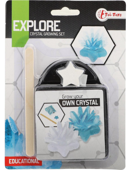 Groei je eigen Kristal! De kit bevat kristal poeder, een basis display, houten stokje en groei kuipje.