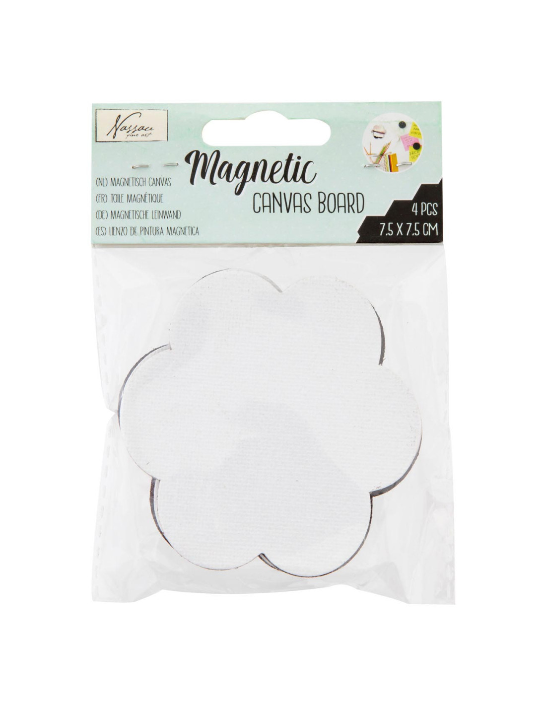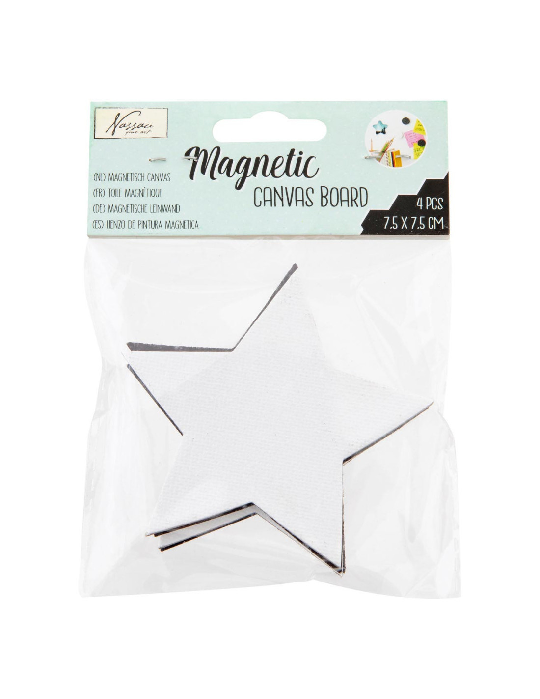 4 stuks magnetisch canvas van Nassau. In bloem of ster-vorm. Afmetingen: 13 bij 9,5 bij 2,1 cm. Geschikt vanaf 3 jaar.
