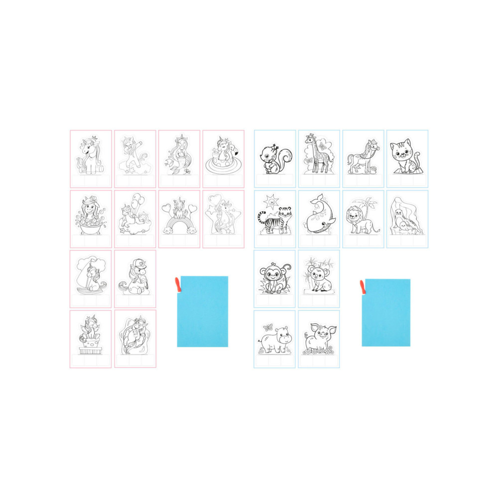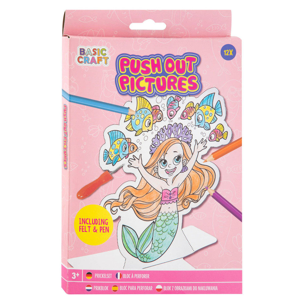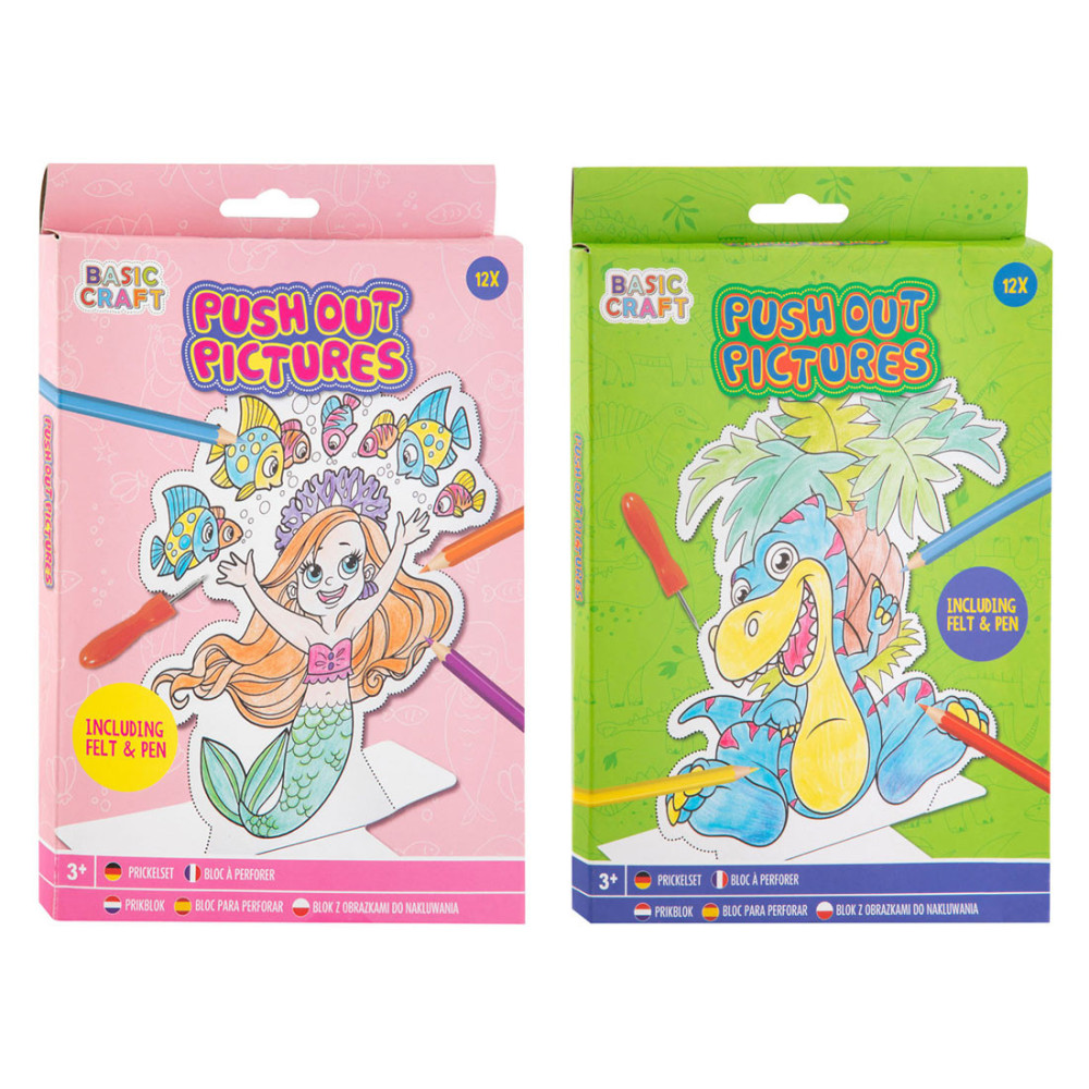 Prikblok dieren met 12 vellen, een prikmat en een prikpen.