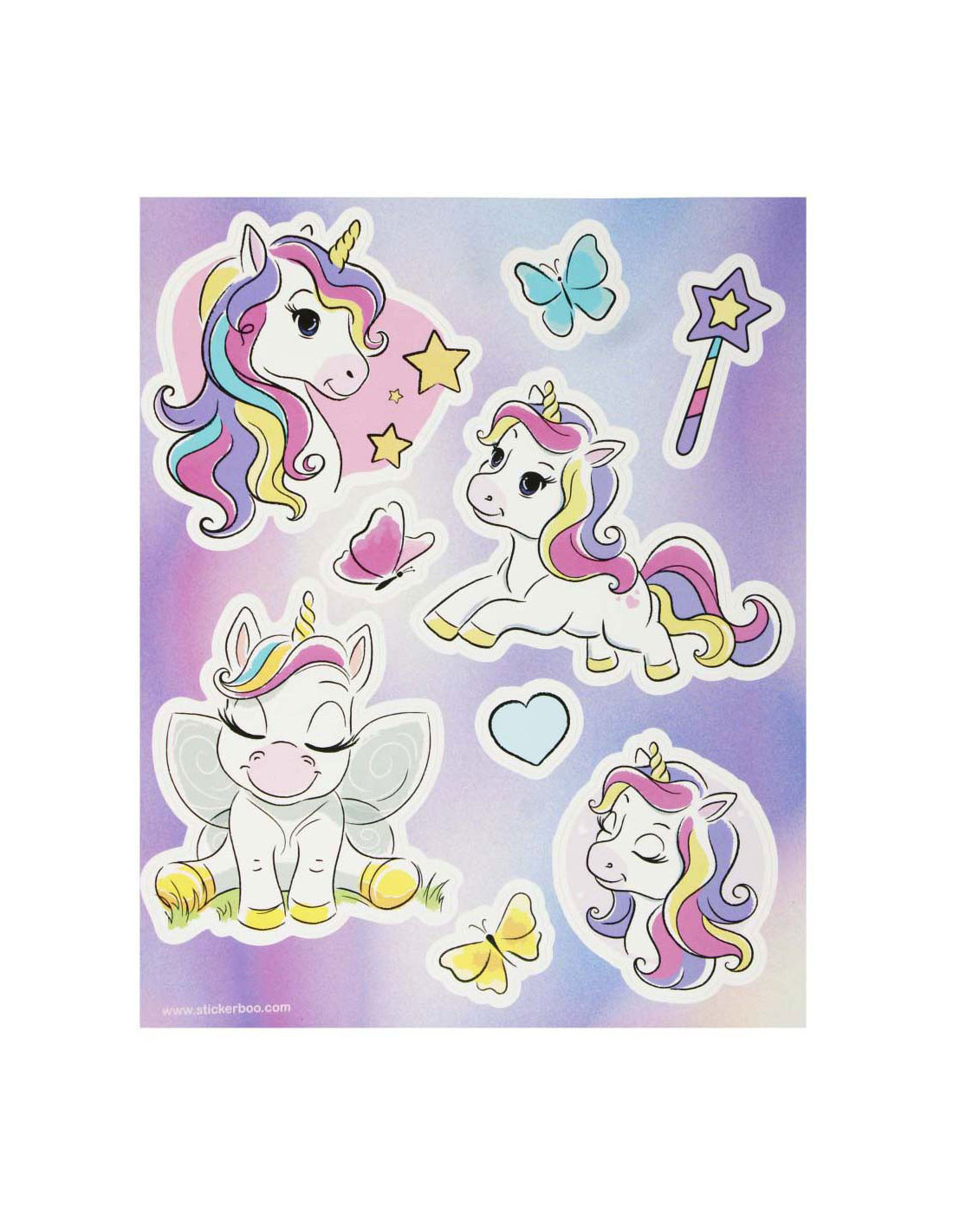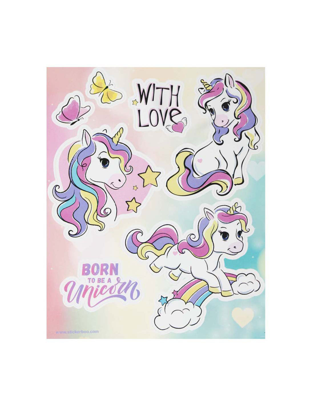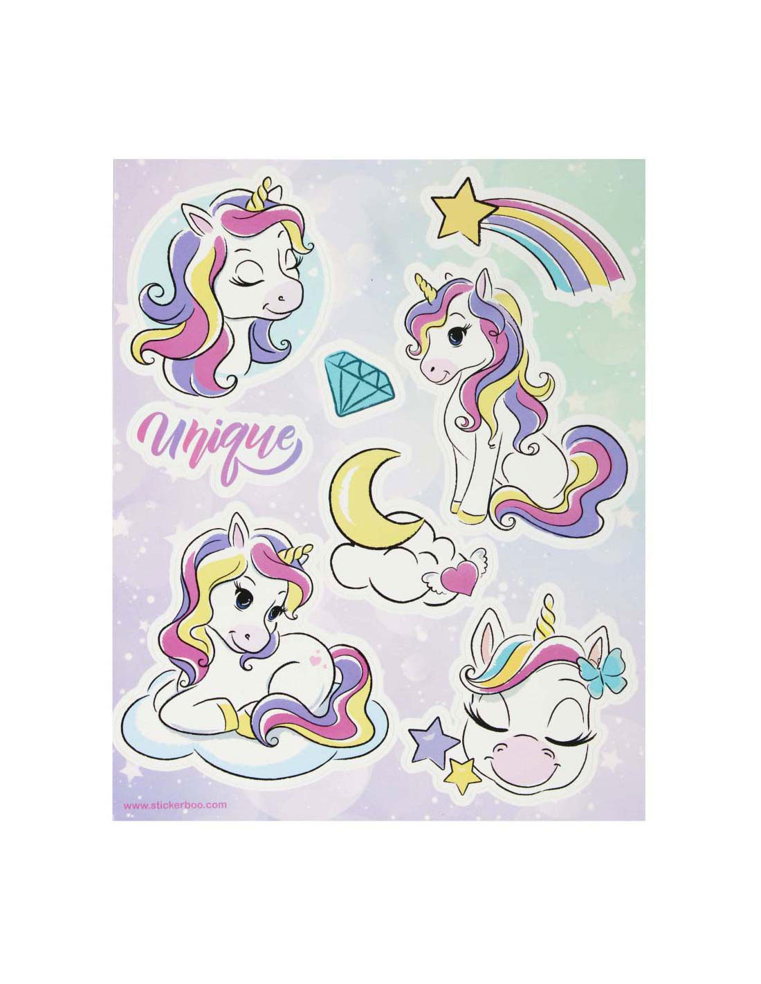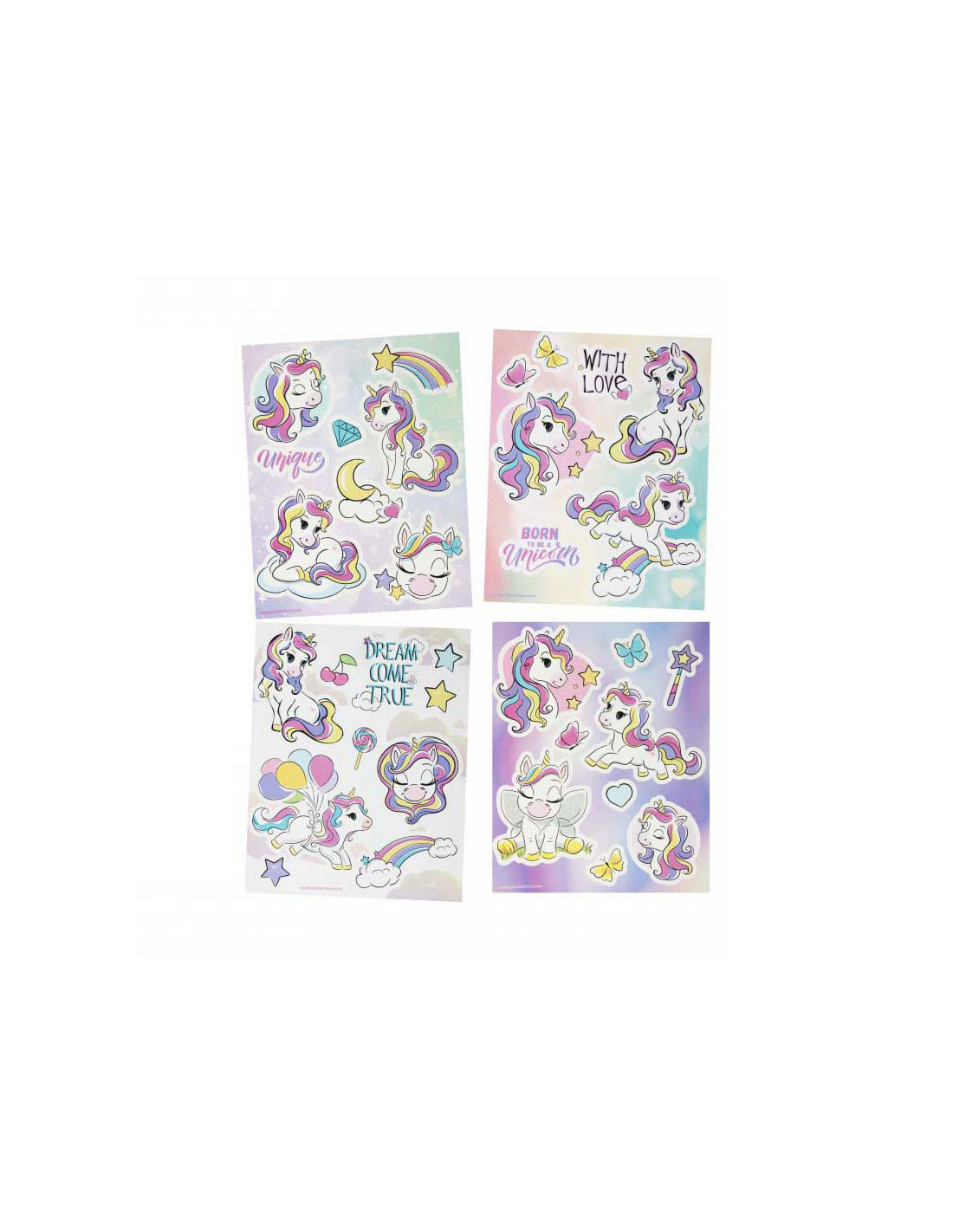 STARPAK raamstickers met afbeeldingen van unicorns, de set bevat 4 sjablonen met 34 stickers die klaar zijn om op het raam te plakken! De stickers zijn hebruikbaar. Afmetingen stickervel: 16 x 21 centimeter.