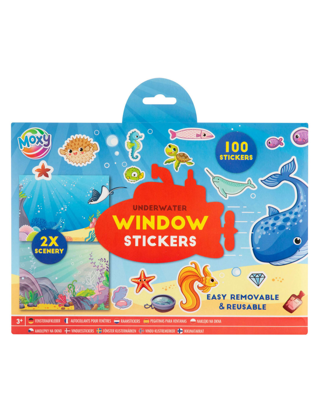 Set van ruim 100 herbruikbare zeedierenraamstickers, inclusief 2 onderwater plakachtergronden van 29 x 21 cm groot. Geschikt vanaf 3 jaar.