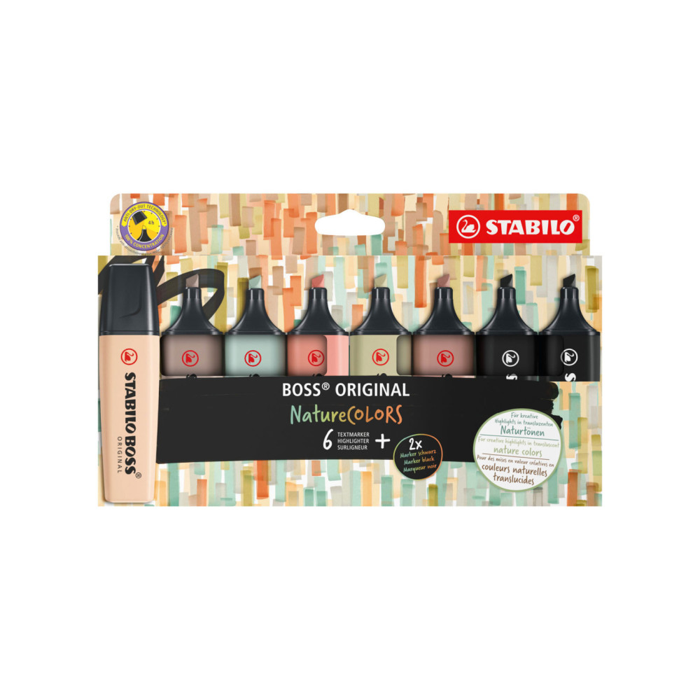 • Creëer subtiele highlights met de moderne kleuren van de STABILO BOSS ORIGINAL NatureCOLORS markeerstiften