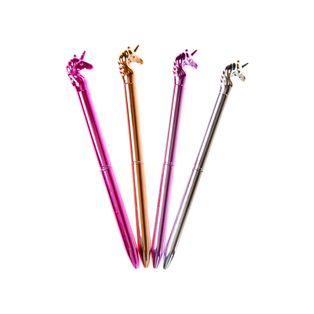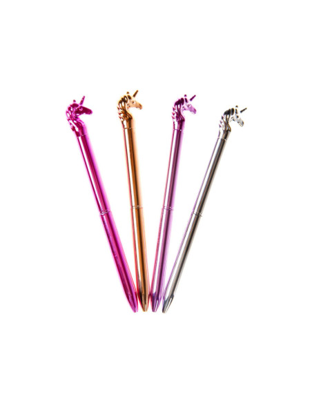 Metallic eenhoorn balpen. Afmetingen: 16 cm.