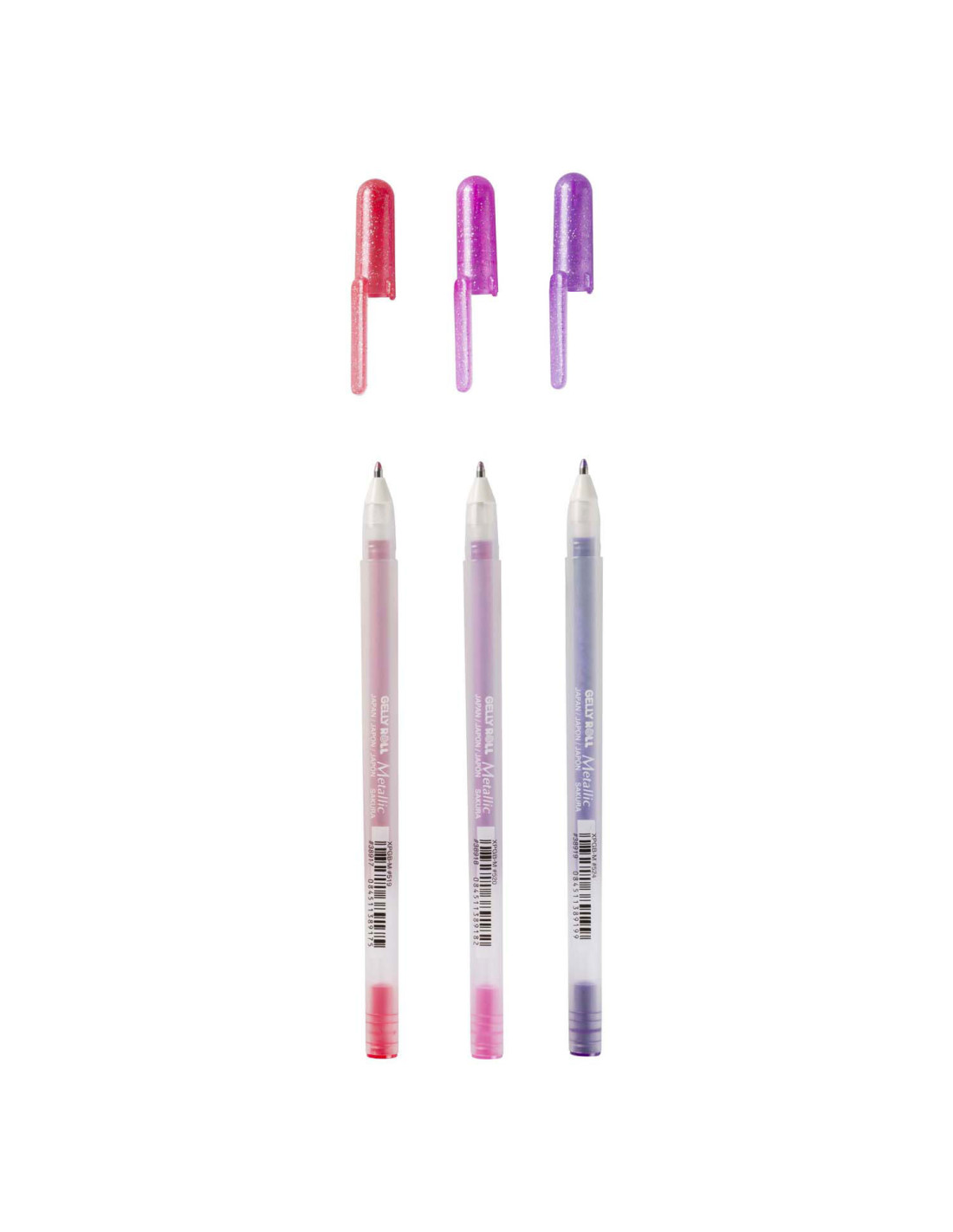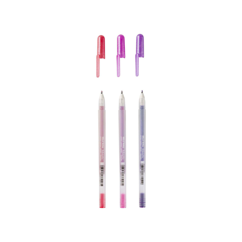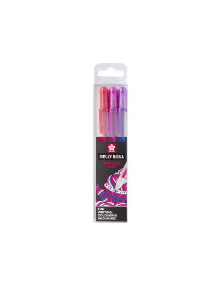 De drie zoetste kleuren opvallend glanzende Gelly Rolls in één set: Paars (524), Roze (520) en Rood (519) metallic gelpennen.