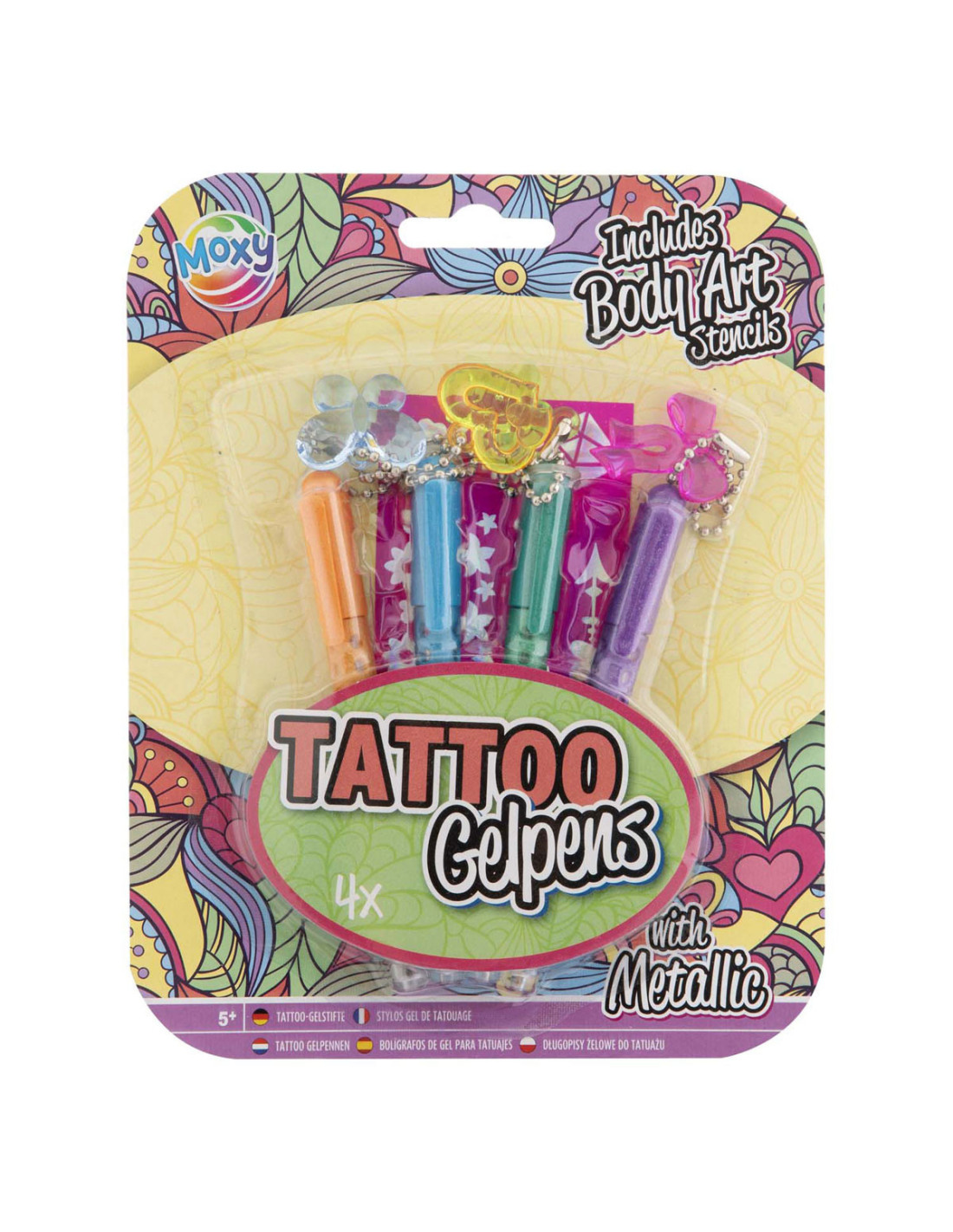 Set van 4 metallic tattoo gelpennen. Geschikt voor kinderen vanaf 5 jaar.