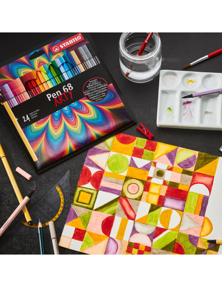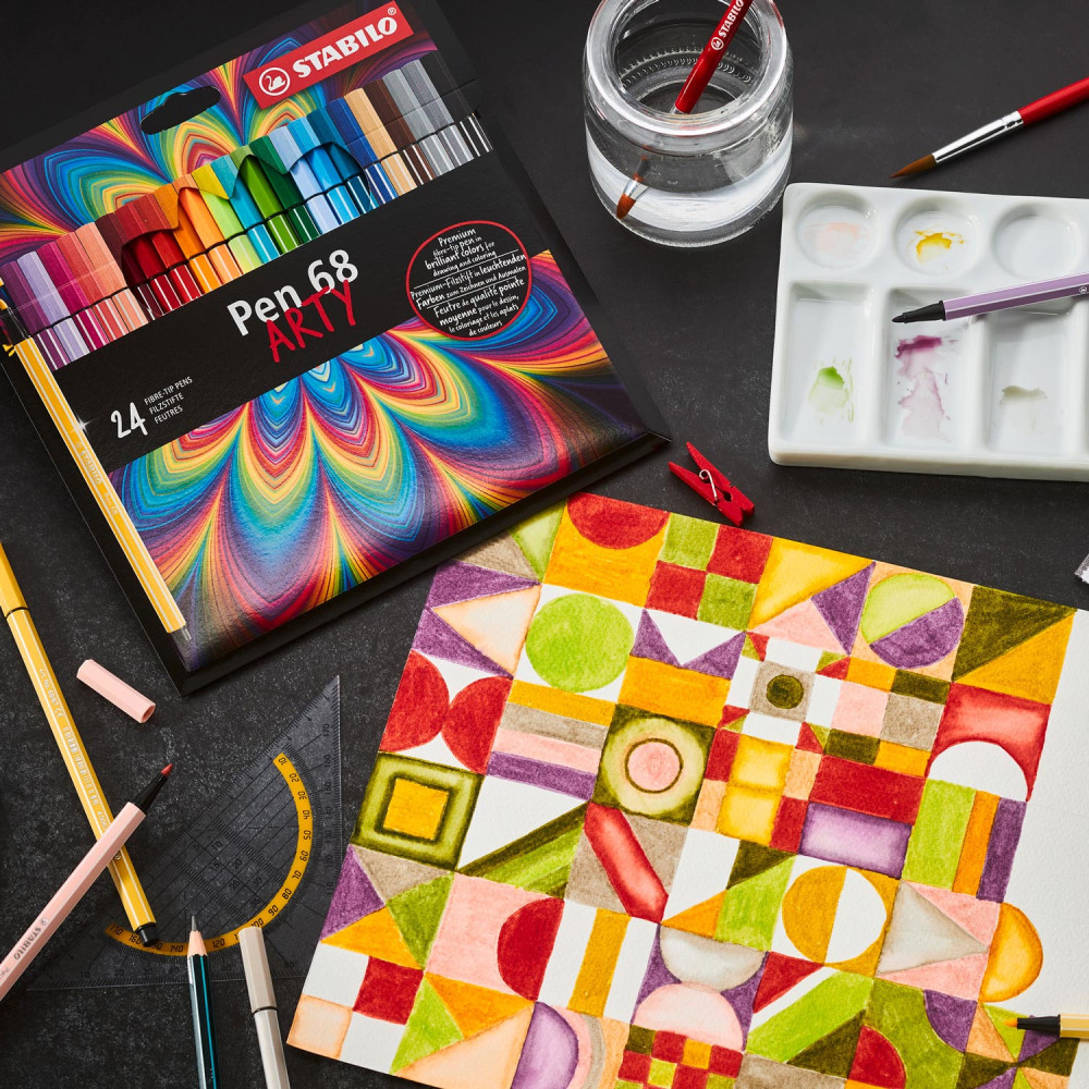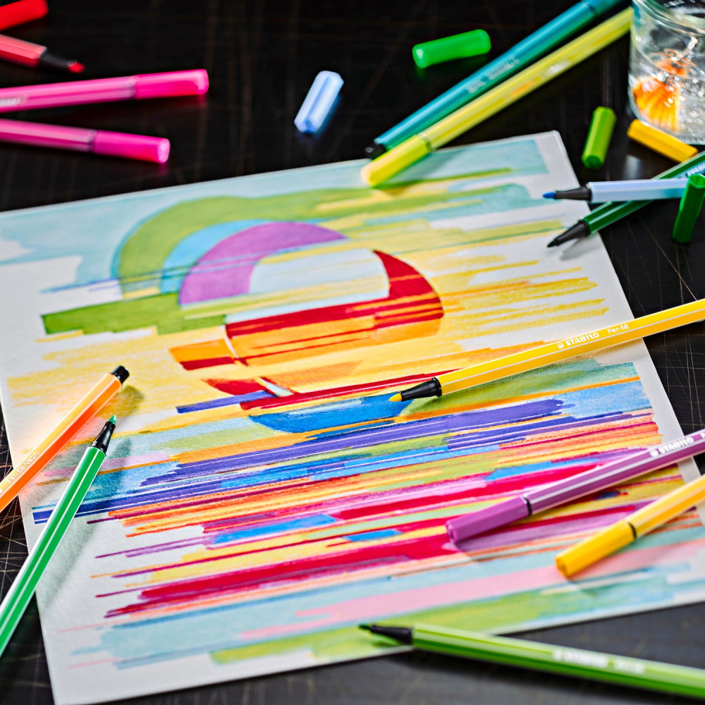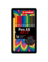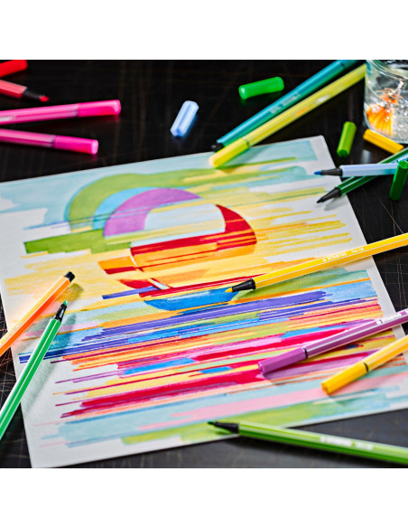 De STABILO Pen 68 in Metalen Doos, heeft maar liefst 10 verschillende viltstiften. Iedere kleur is super mooi! Met deze viltstiften kan je gemakkelijk kleurplaten inkleuren of mooie tekeningen maken. Doordat de STABILO Pen 68 in Metalen Doos een geurloze punt heeft ruik je de inkt helemaal niet. Vergeten om de dop op de viltstift te doen? Geen probleem, deze viltstiften kunnen wel tot 24 uur zonder dop.