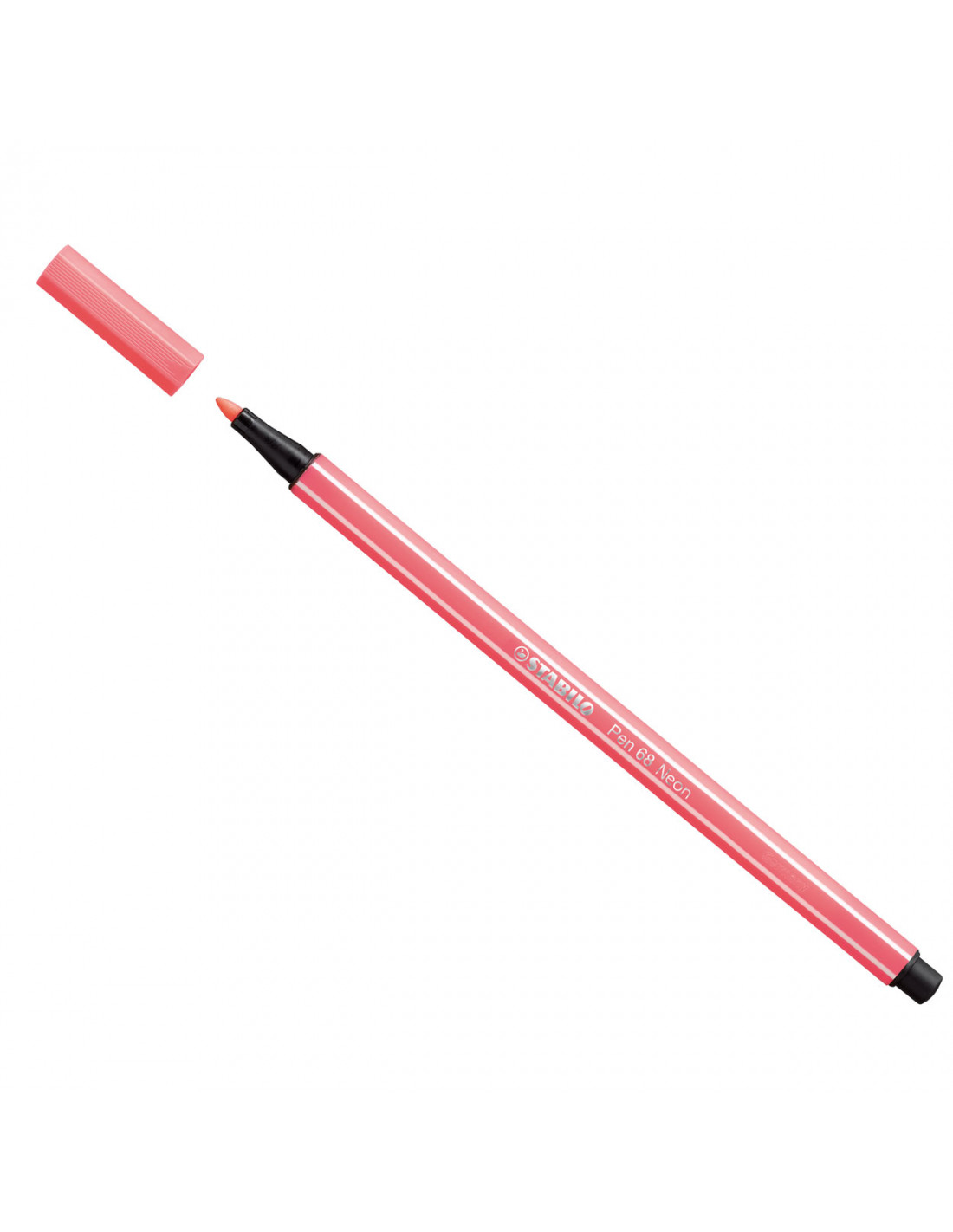 STABILO Viltstift - Fluoriserend Rood (68/040). Deze pen is uiterst geschikt voor lijnen mee te trekken of grote oppervlakken mee in te kleuren. Bent u de dop na het tekenen vergeten om de dop erop te doen? Geen probleem, de pen kan maar liefst 24 uur zonder en droogt daarom niet uit. Drukt u regelmatig wel eens te hard op de punt? Geen probleem, deze pen is zelfs drukbestendig. De schrijfbreedte is ongeveer 1mm en de pen is voorzien van een ronde punt.