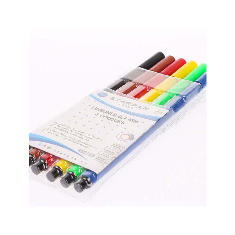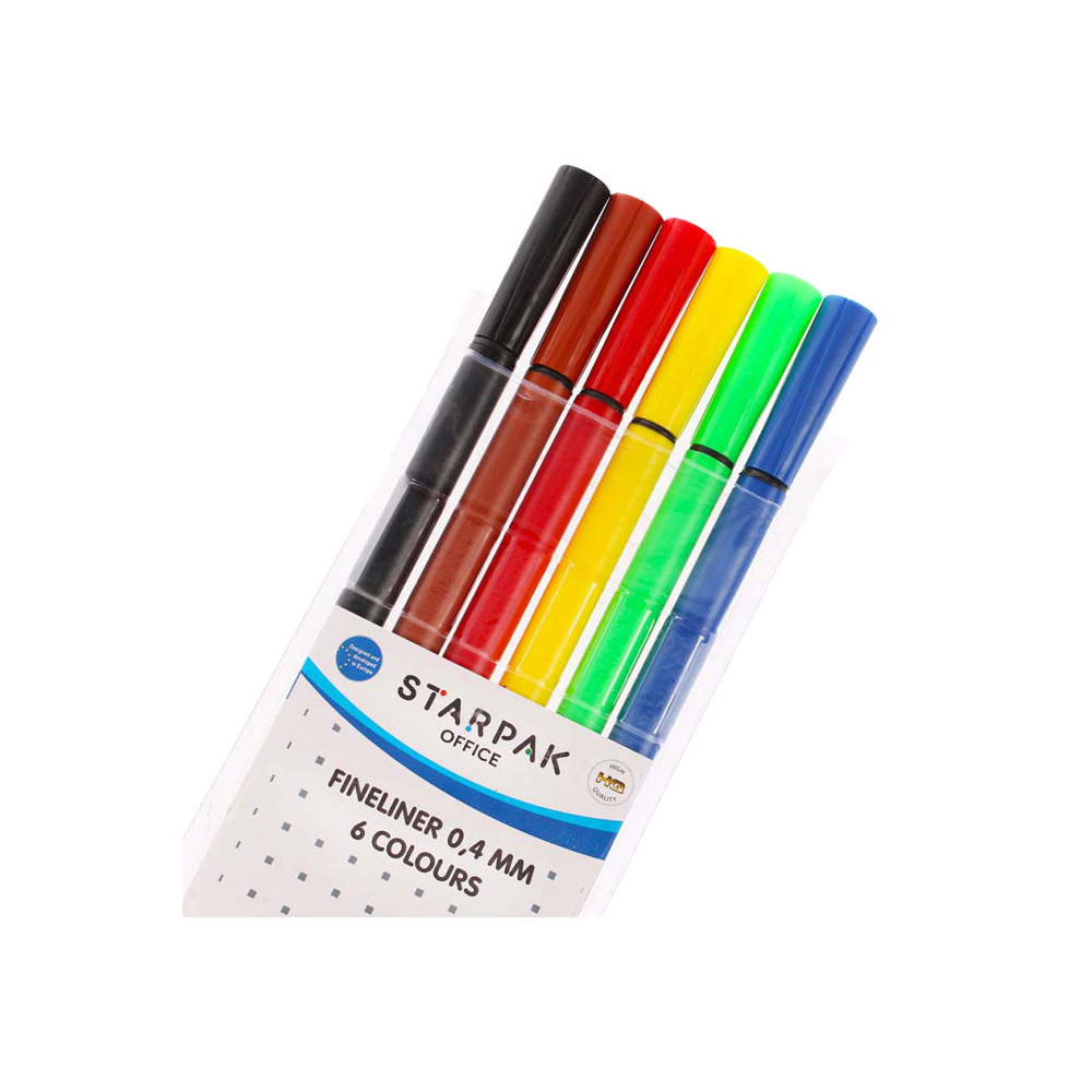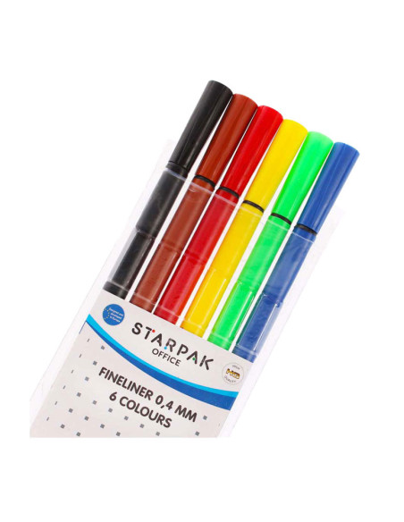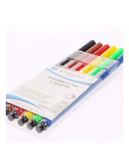 Set van 6 fineliners in verschillende kleuren. De fineliners hebben een schrijfdikte van 0,4 mm. Geschikt voor kinderen vanaf 3 jaar.