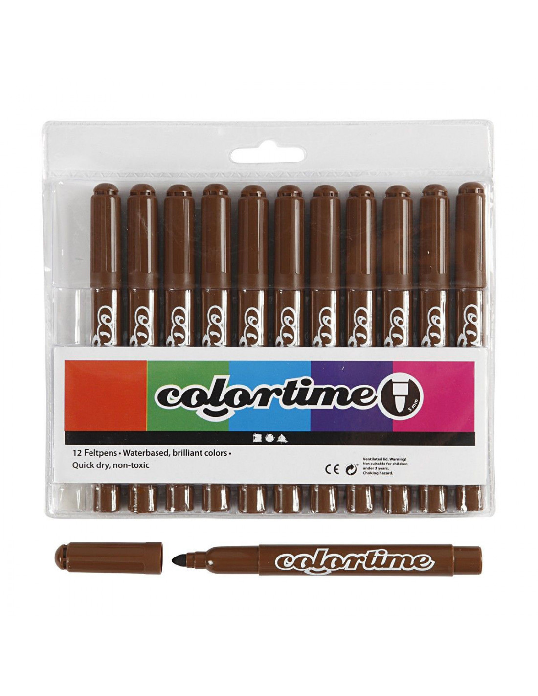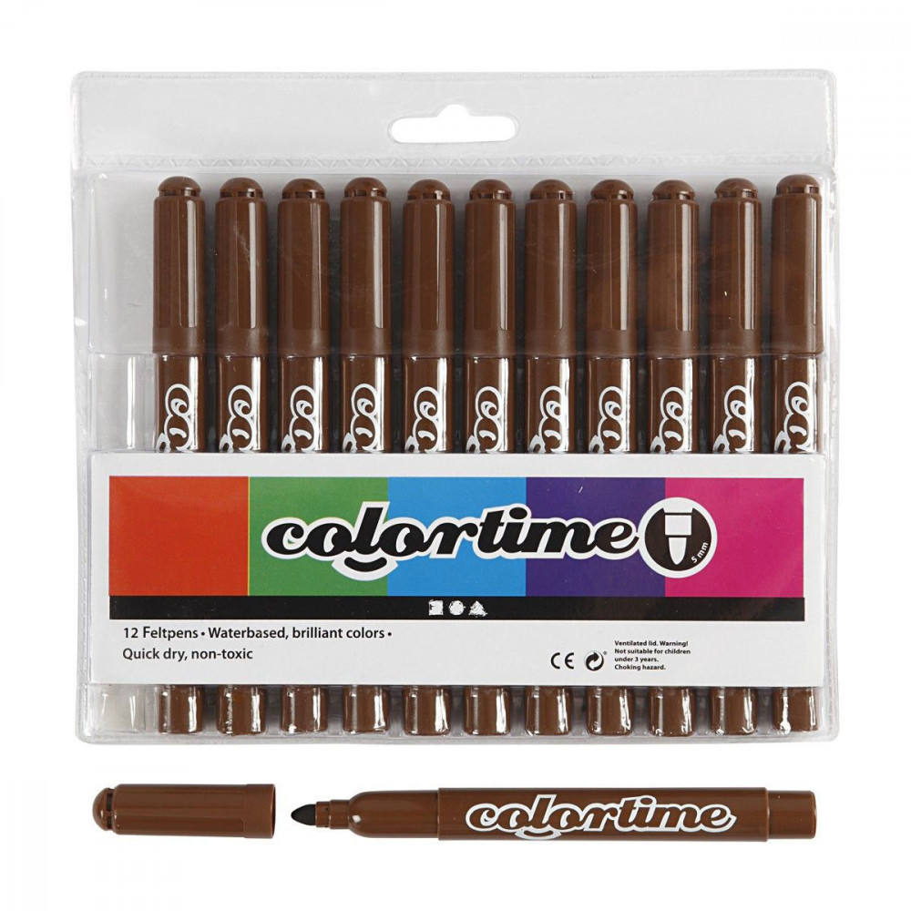 Stift op waterbasis met sterke dekkracht, droogt snel en uitgerust met veiligheidsdop. Inhoud: 12 bruine stiften. Lijndikte: 5 mm.