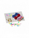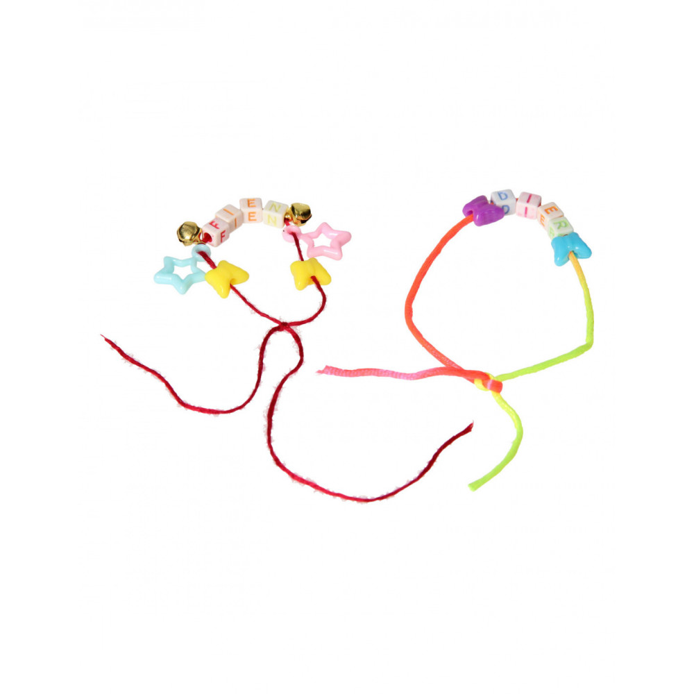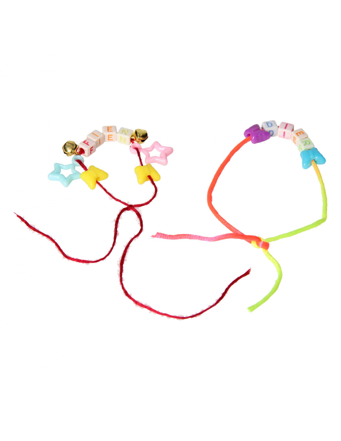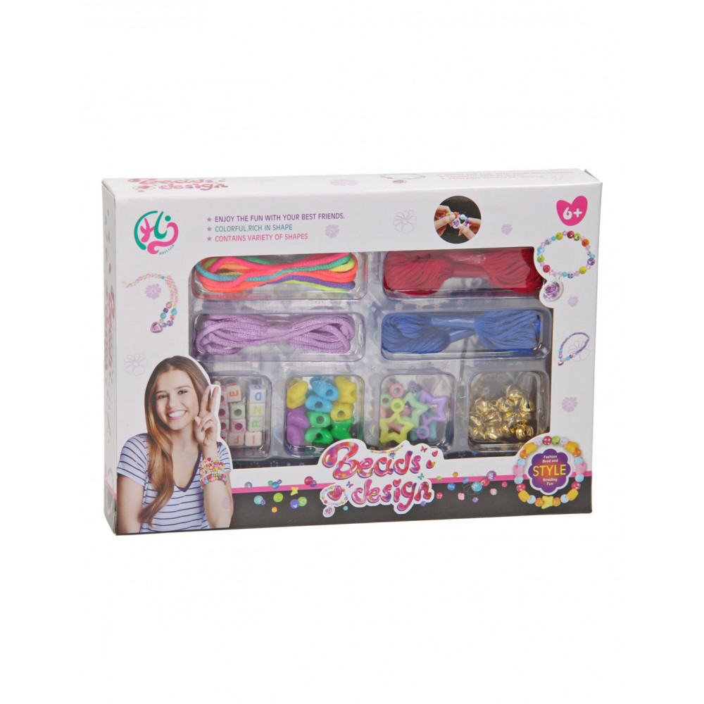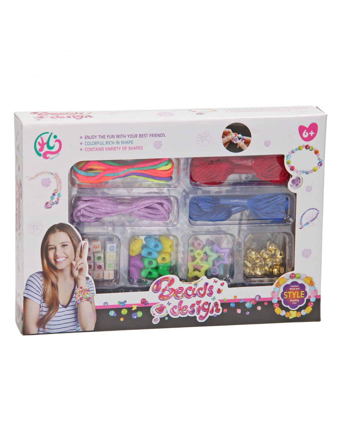 Met deze kleine sieradenset kunnen kinderen hun eigen creatieve sieraden maken, waaronder armbanden, kettingen, ringen of oorbellen. De set bevat een assortiment kunststof kralen en belletjes in diverse kleuren en vormen, samen met rijgdraad om de kralen aan elkaar te rijgen. Op de achterkant van de verpakking zijn instructies te vinden om kinderen te helpen bij het maken van hun sieraden.