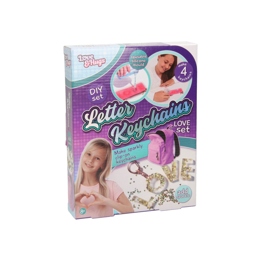 DIY knutselet voor het maken van 4 resin/epoxy sleutelhangers met 'LOVE' letters.