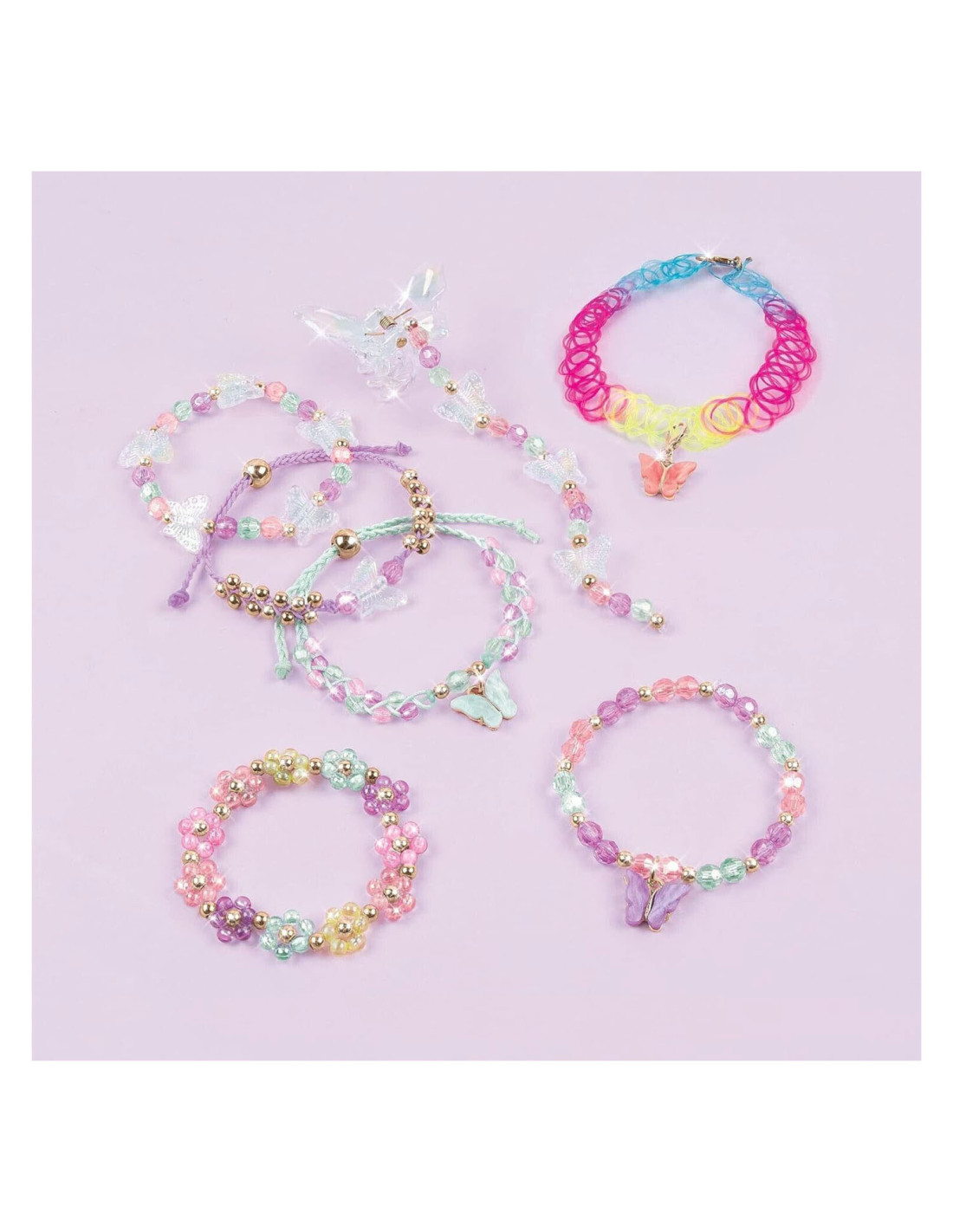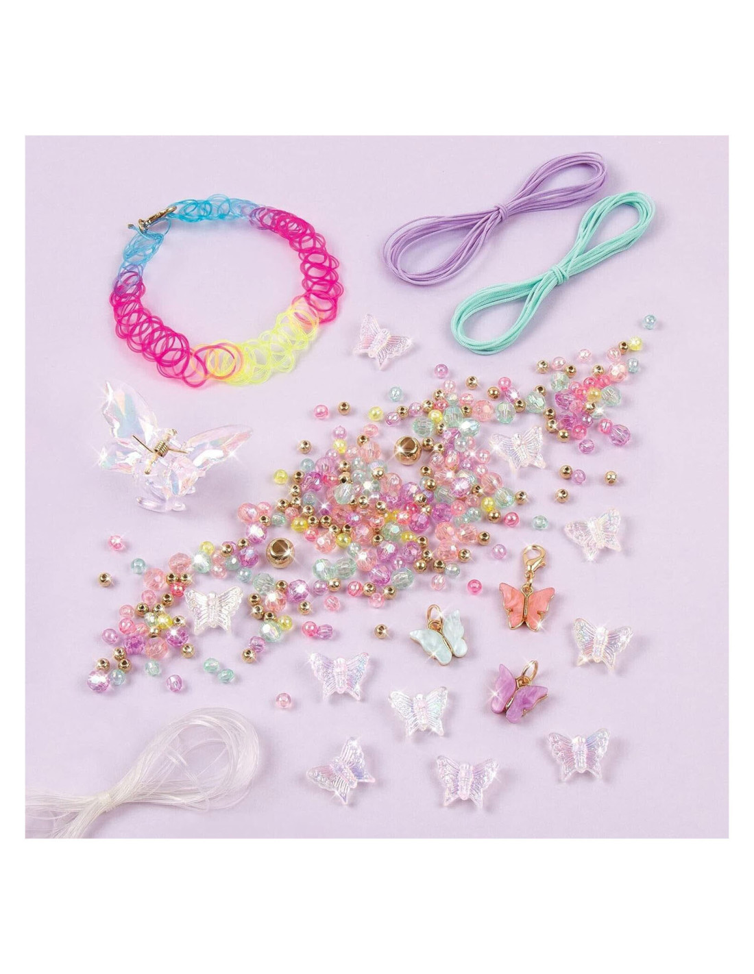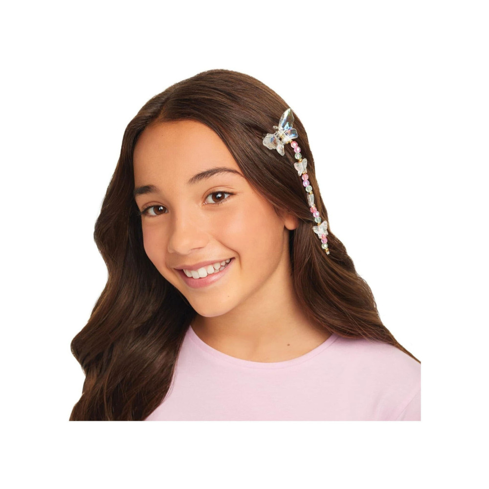 Laat je vleugels uitslaan met deze vlinder sieradenset! Dit doe-het-zelf sieradenpakket begeleidt jonge kinderen en tweens om hun eigen modieuze sieraden en haaraccessoires te ontwerpen en te creëren met geweldige vlinderbedels, gekleurde kralen en koord. ALLES INBEGREPEN. Dit sieradenpakket heeft alles wat je kind nodig heeft om tot 5 opvallende bedelarmbanden, een choker ketting en een haarklem te maken. Het bevat nylon koord, meer dan 270 verschillende kralen, een haarklem in vlindervorm, een elastische choker met karabijnsluiting, bedels en meer! GEWELDIG CADEAU-IDEE. De ontwikkelingsspeelgoed van Make It Real zijn geweldige cadeaus voor kinderen en tweens, waardoor ze vaardigheden ontwikkelen die hen zullen helpen succesvol te zijn als de toekomstige leiders en makers van morgen. Dit doe-het-zelf vlinder sieradenpakket biedt een leuke en creatieve activiteit PERFECT VOOR KINDEREN VANAF 8 JAAR.