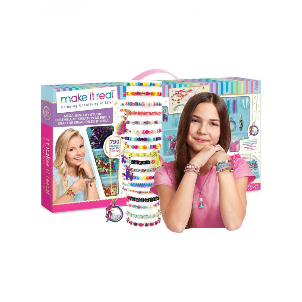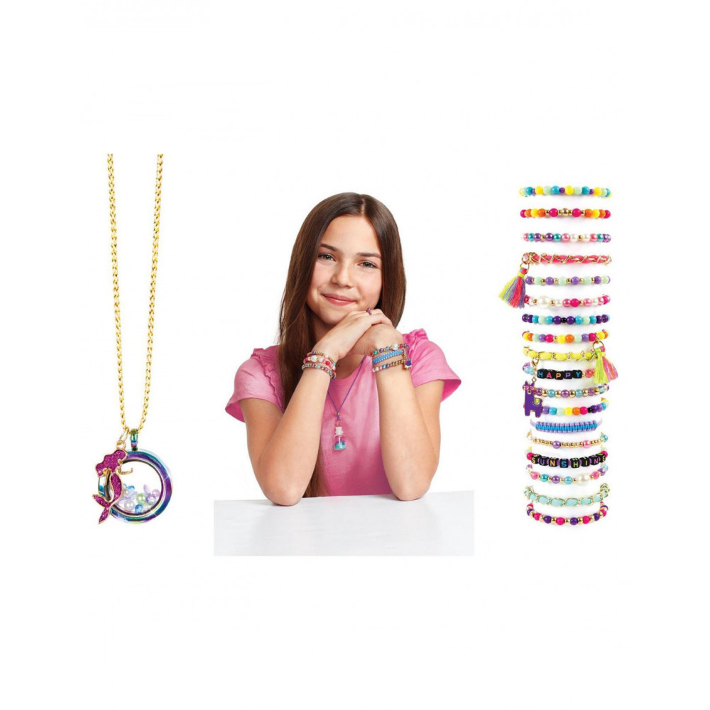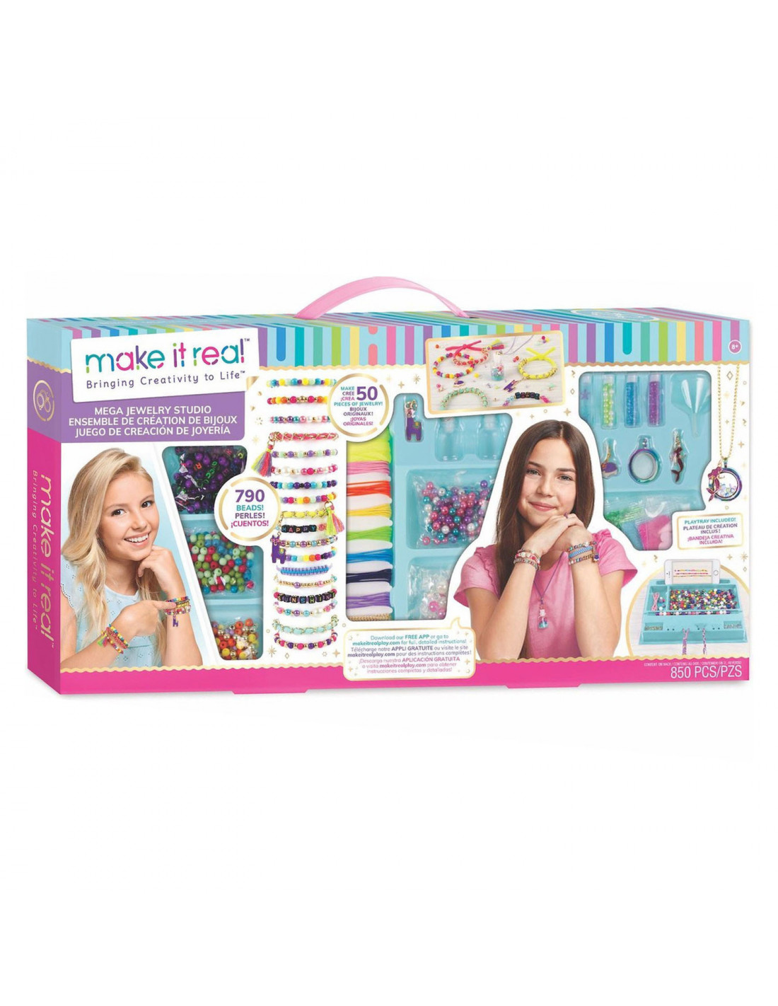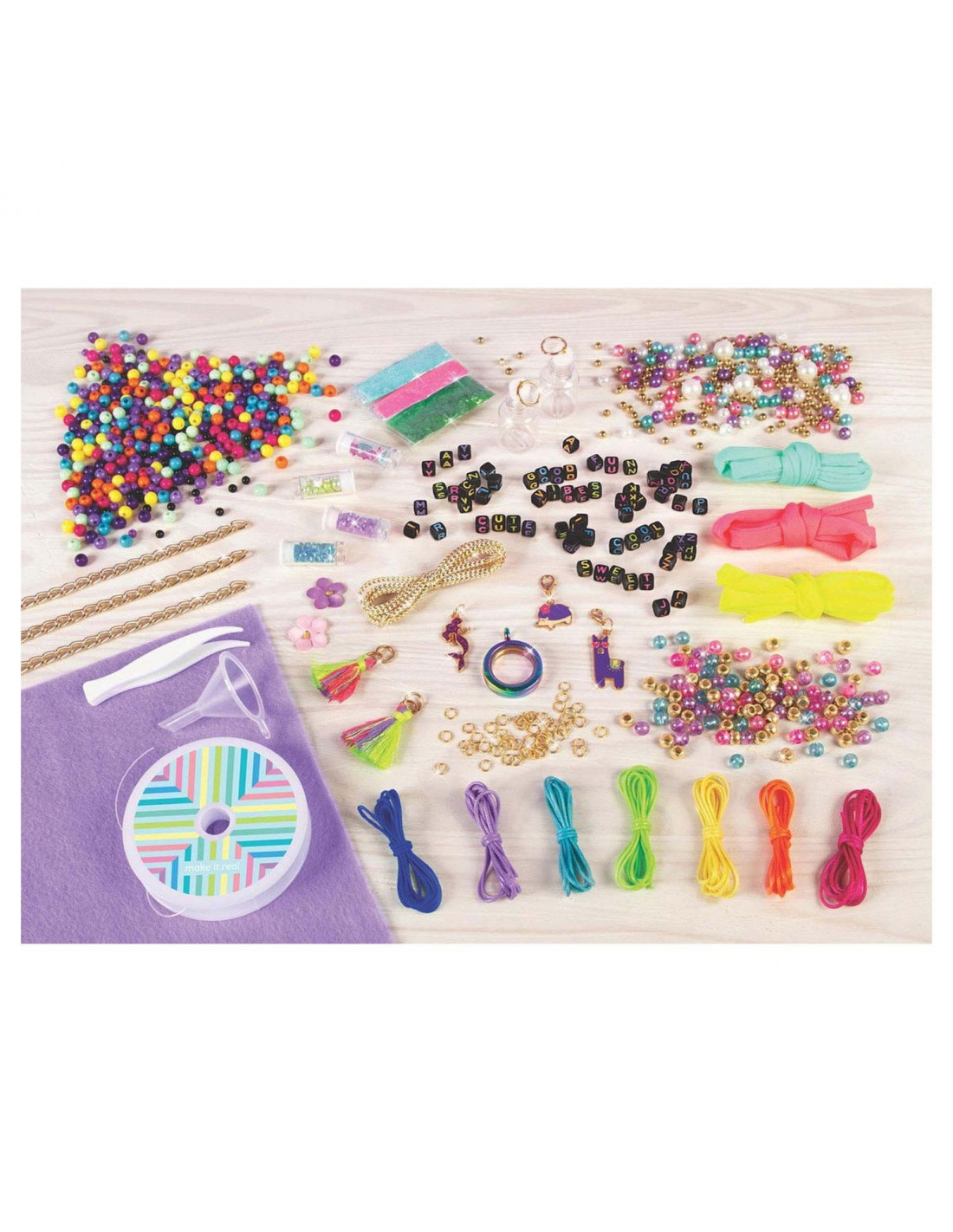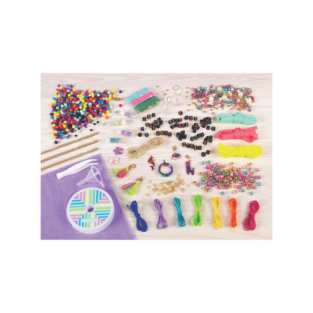 Creativiteit is grenzeloos met deze Mega Sieradenstudio set, gevuld met alles wat je nodig hebt om tot 50 verschillende sieraden te maken! Het bevat 850 mix&match kralen, levendige koorden en een mooie bewaardoos om het allemaal perfect georganiseerd te houden. Maak alles wat je maar kunt bedenken - van armbanden en kettingen tot flitsende haaraccessoires.