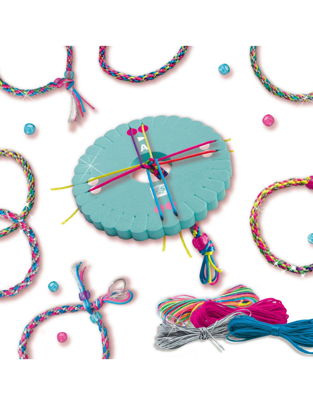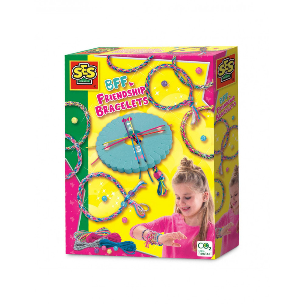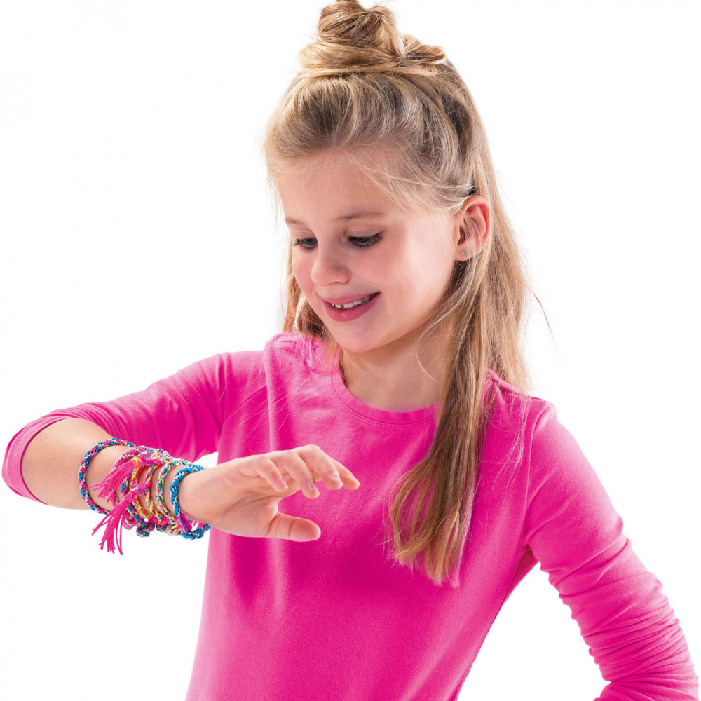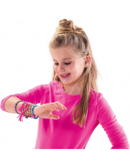 Met deze set maak jij je eigen vriendschapsarmbandjes met draad en pony beads in allerlei kleuren. Maak er één voor je beste vriendin of vriend en laat zien dat jullie BFF zijn. Of maak er veel meer voor jezelf of voor je hele vriendengroep! Het handige wiel maakt het heel eenvoudig om de bandjes te knopen. Klem de draadjes in het foam en verplaats deze zoals aangegeven. Voor je het weet is je eerste bandje al af!