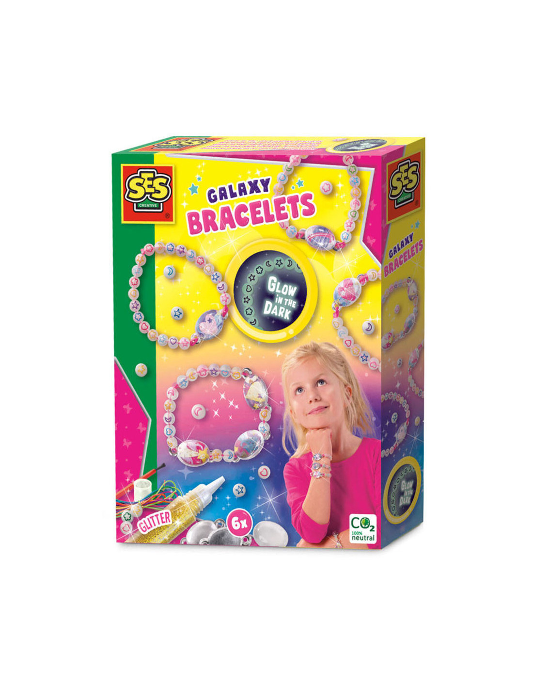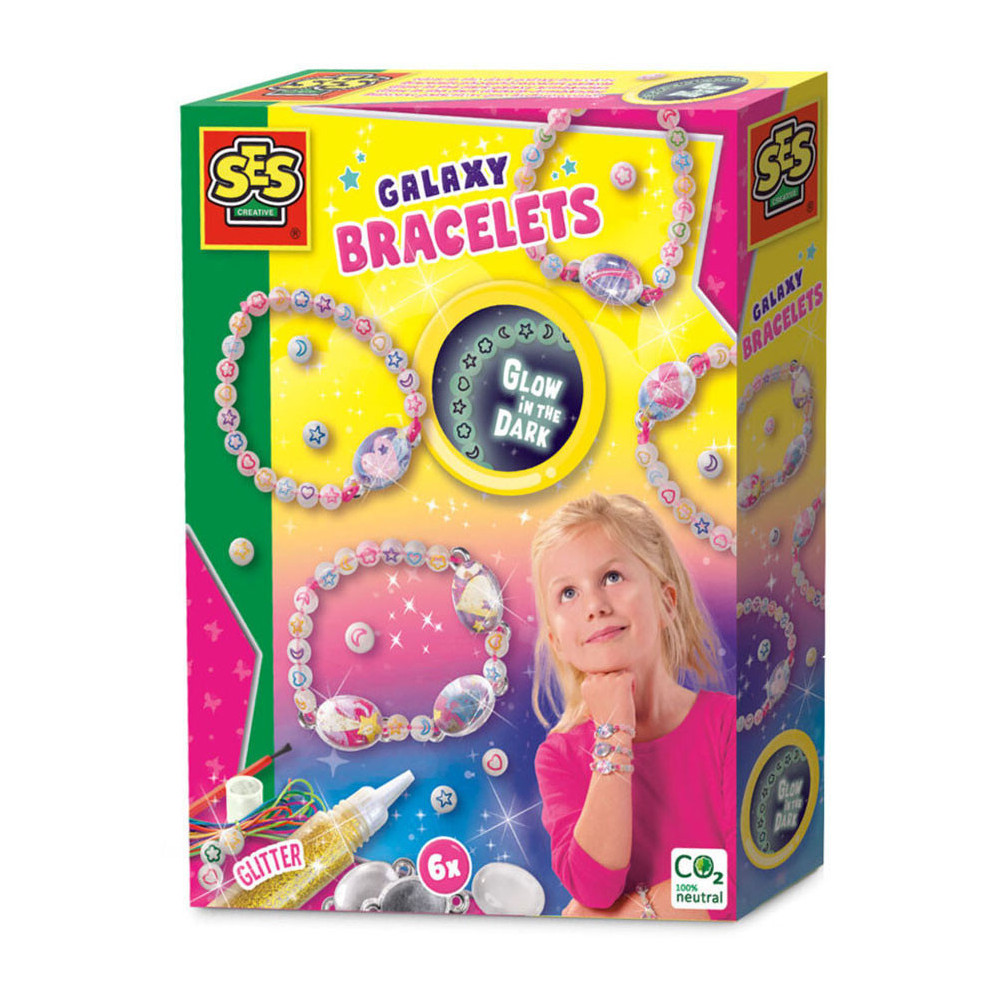 Deze galaxy armbanden zijn niet alleen helemaal zelf te maken maar geven ook nog eens licht! Met de glow in de dark kralen, verschillende bedels en elastiek kunnen kinderen de mooiste sieraden maken.
