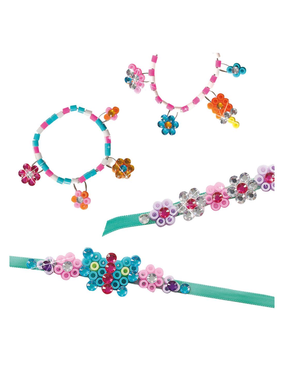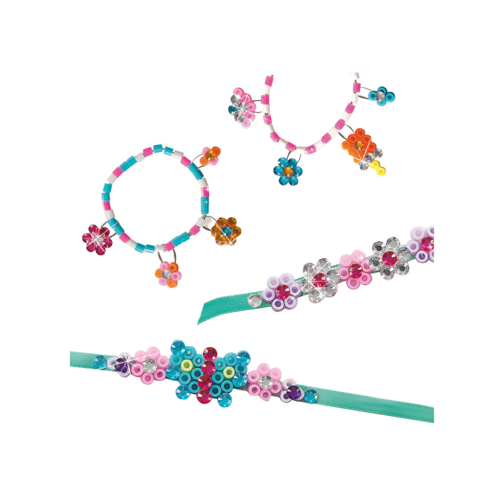 Met deze set van strijkkralen kun jij de allermooiste sieraden maken! Maak mooie regenbogen, vlinders of bloemen om op de verschillende bandjes en ringen te plakken. Met de stickers kun jij je creaties nóg mooier maken en ontwerp jij de mooiste sieraden.