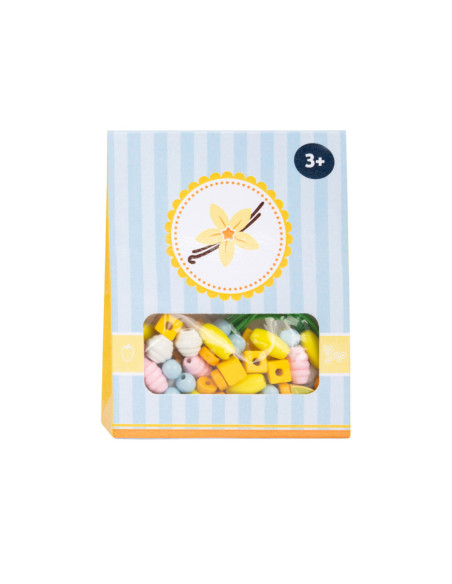 Sieradenontwerpers opgelet! Deze set kralen laat creativiteit en fantasie de vrije loop. De kleurrijke houten kralen en schattige hangers zitten in snoepzakjes en kunnen worden geruild en verzameld met vrienden. Aardbei, vanille of bosbes - iedereen vindt hier zijn favoriete kleur!