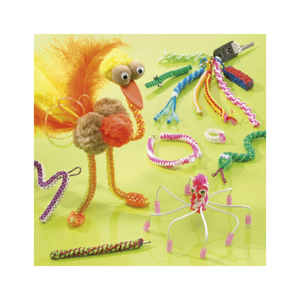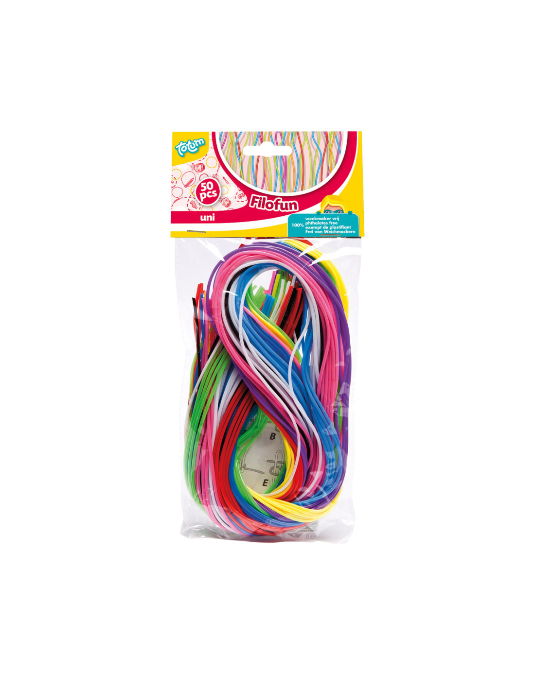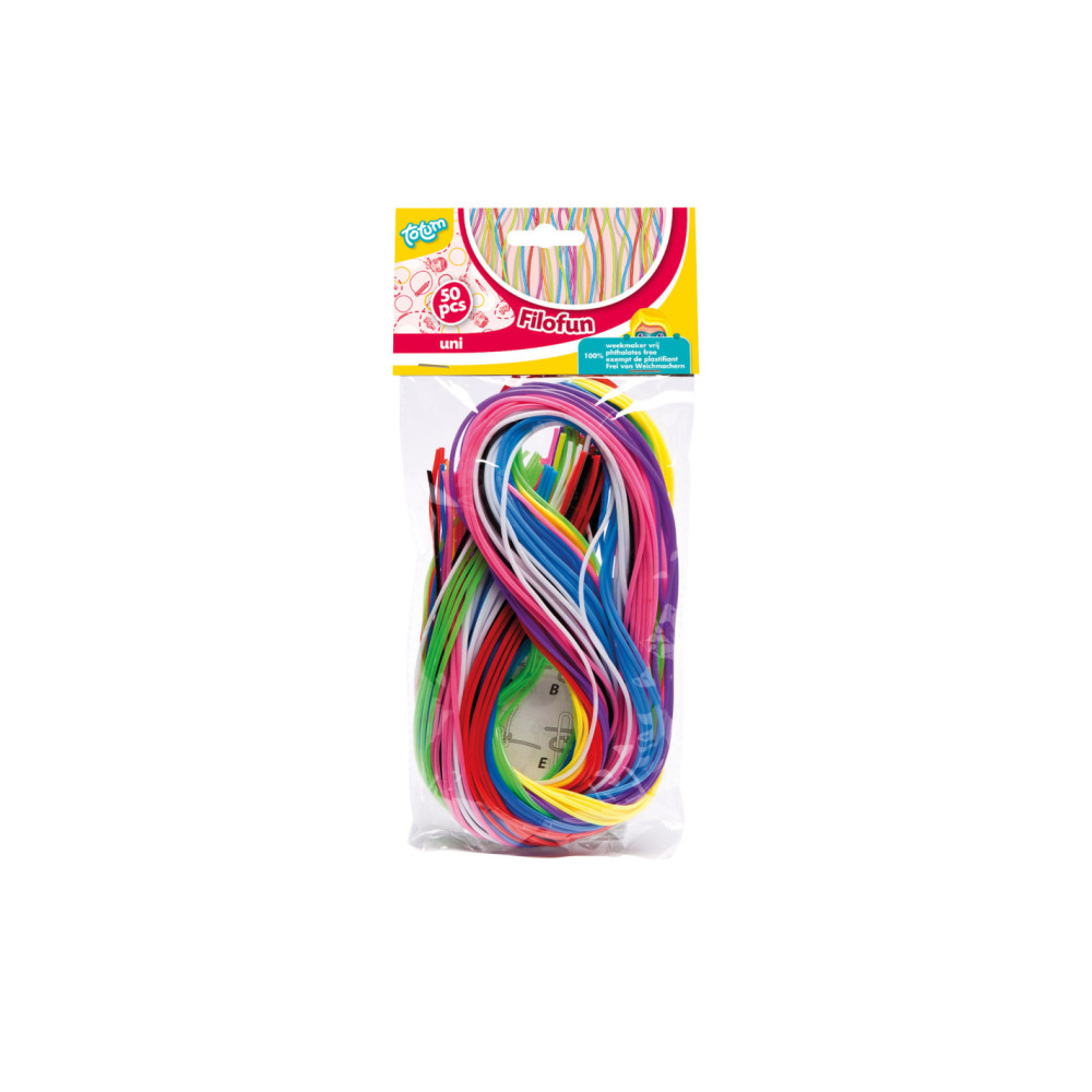 Maak de mooiste sieraden en sleutelhangers met deze filofun in unikleuren van Totum. De set bevat 50 draden van stevig kunststof in verschillende heldere kleuren. Inclusief voorbeelden.