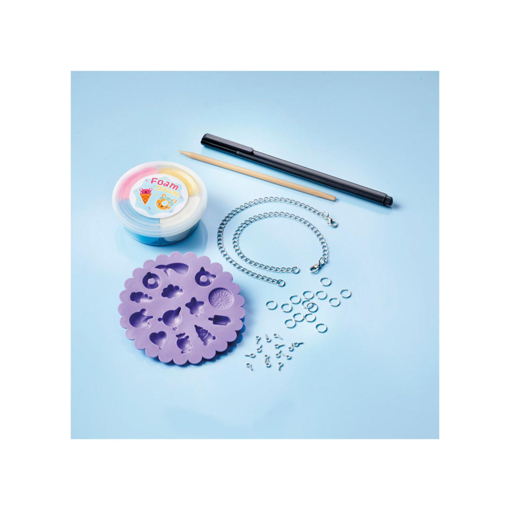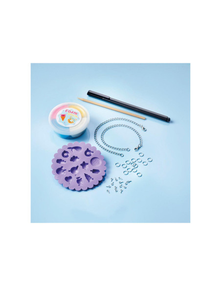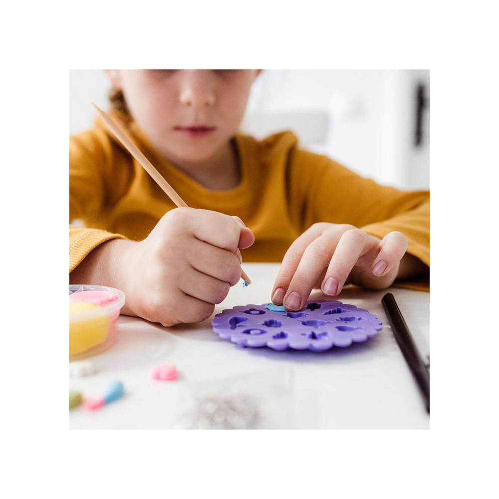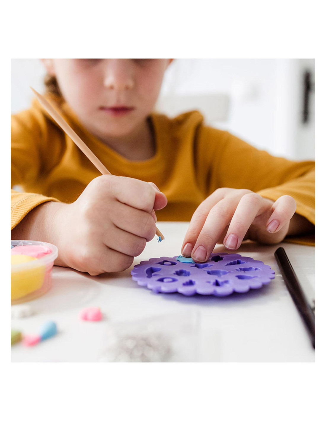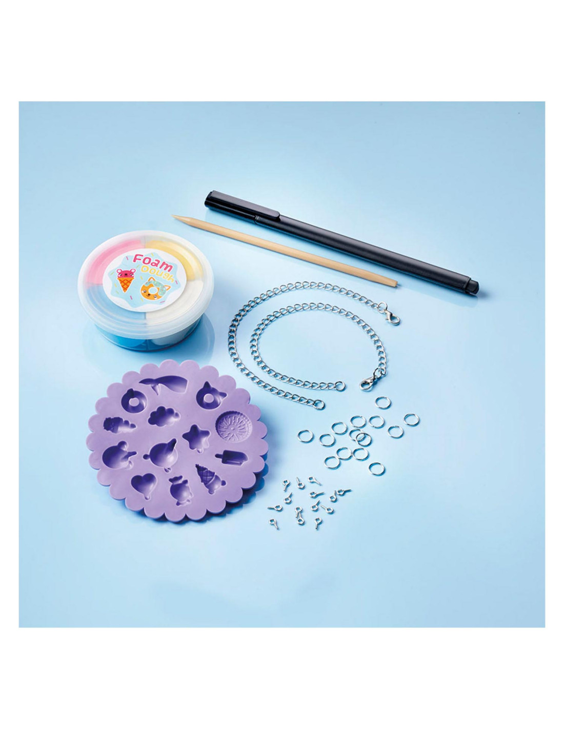 Knutselset voor het maken van je eigen armbandjes. Maak zelf bedels in vrolijke vormpjes van klei en versier ze met de meegeleverde pen. Geschikt vanaf 5 jaar.