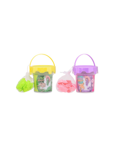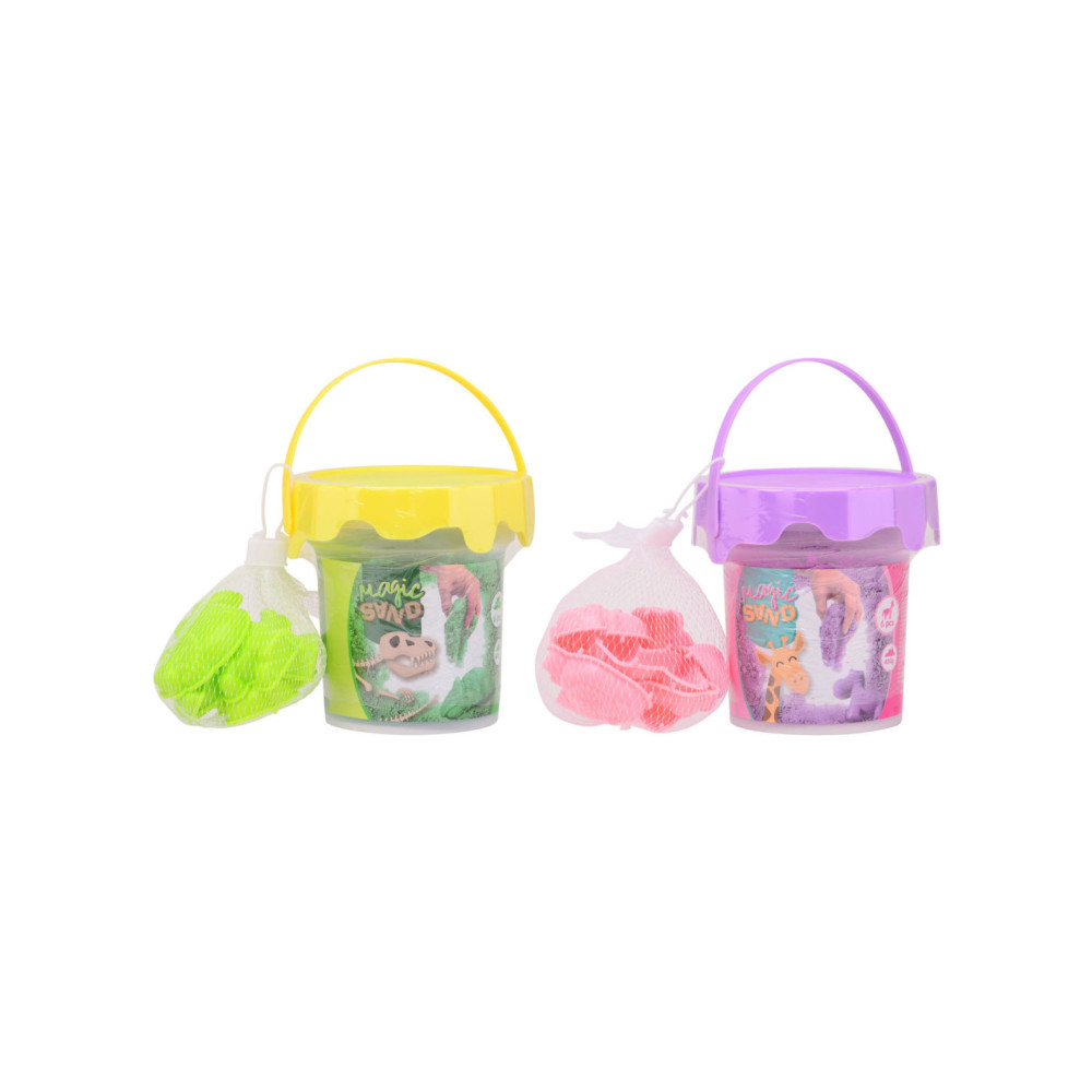 Klein emmertje magisch binnenspeelzand met 6 zandvormpjes. Wordt geleverd in een hersluitbaar emmertje. Inhoud: 400 gram zand. Geschikt vanaf 3 jaar.