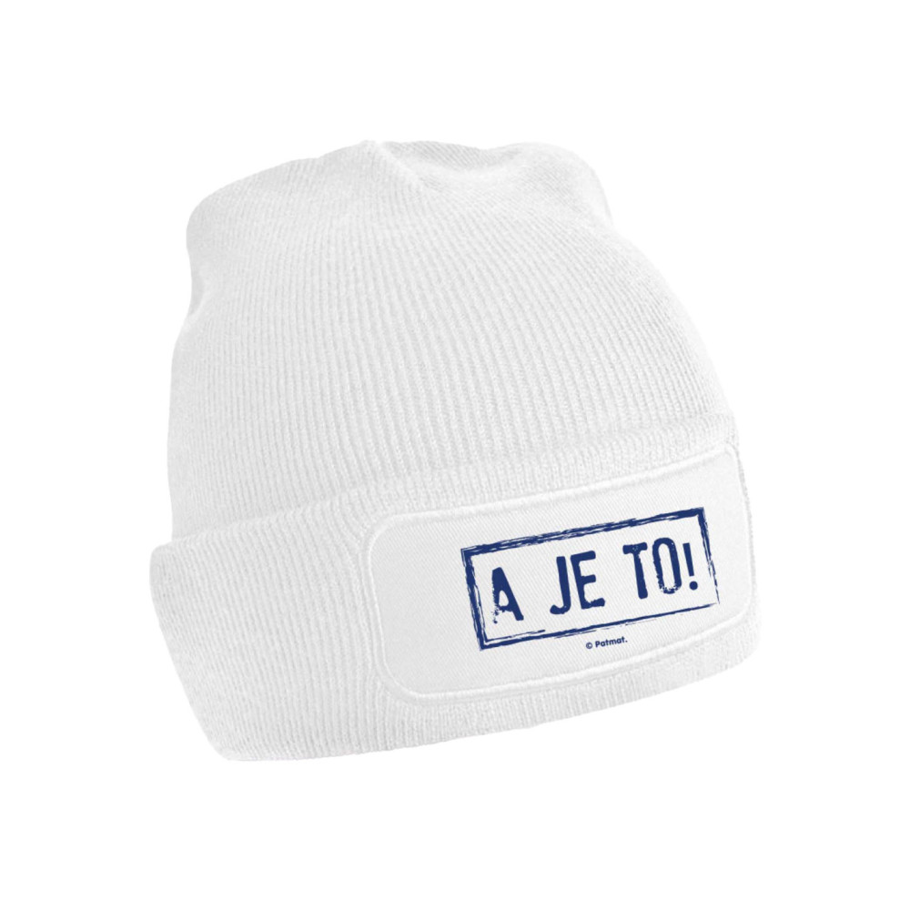 Buurman Beanie in het wit met tekst AjeTo! One Size, Geschikt voor kinderen en volwassenen.