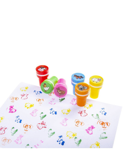 De stempels van boerderijdieren zijn een must-have voor alle creatieve kinderen die van dieren houden. Met deze set kunnen kinderen eenvoudig de mooiste creaties maken op tekeningen, kaarten of schriften. De set bevat zes stempels met verschillende boerderijdieren, zoals een koe, varken, schaap, eend, kip en paard. Zo kunnen kinderen hun eigen boerderij maken op papier.