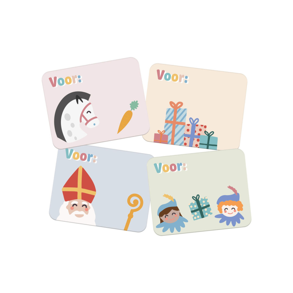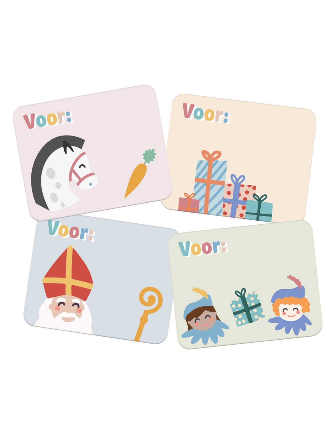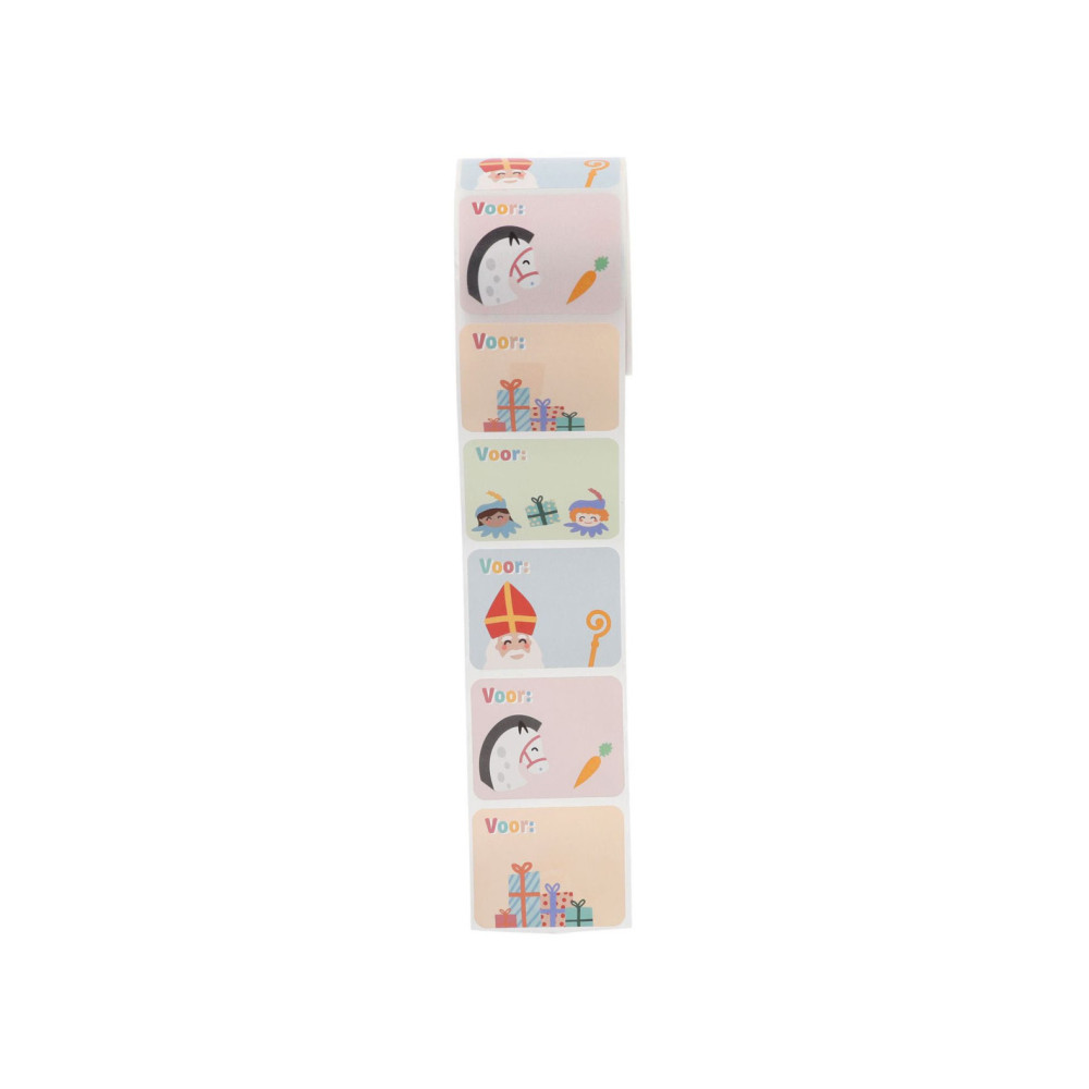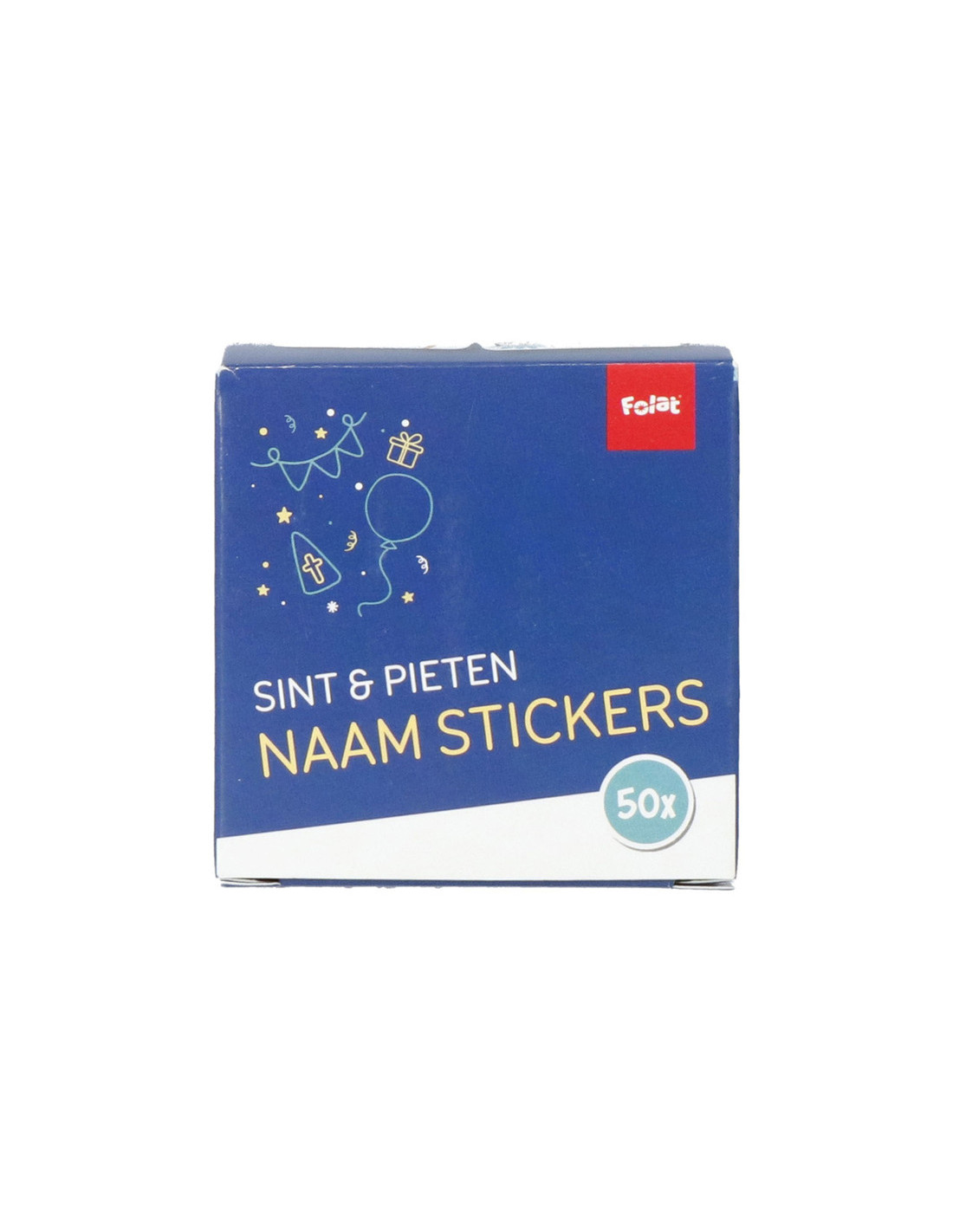 En deze is voor … Dankzij deze handige naamstickers zet iedere hulp-Sinterklaas op een leuke manier de namen op de cadeaus. De naamstickers hebben een afmeting van 50x40 mm en zijn per 50 verpakt in een papieren doosje. Dit artikel is gemaakt van papier.