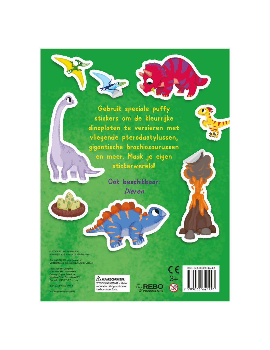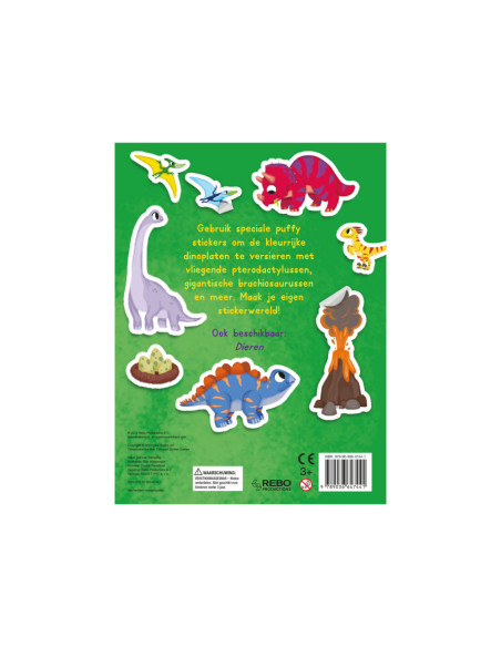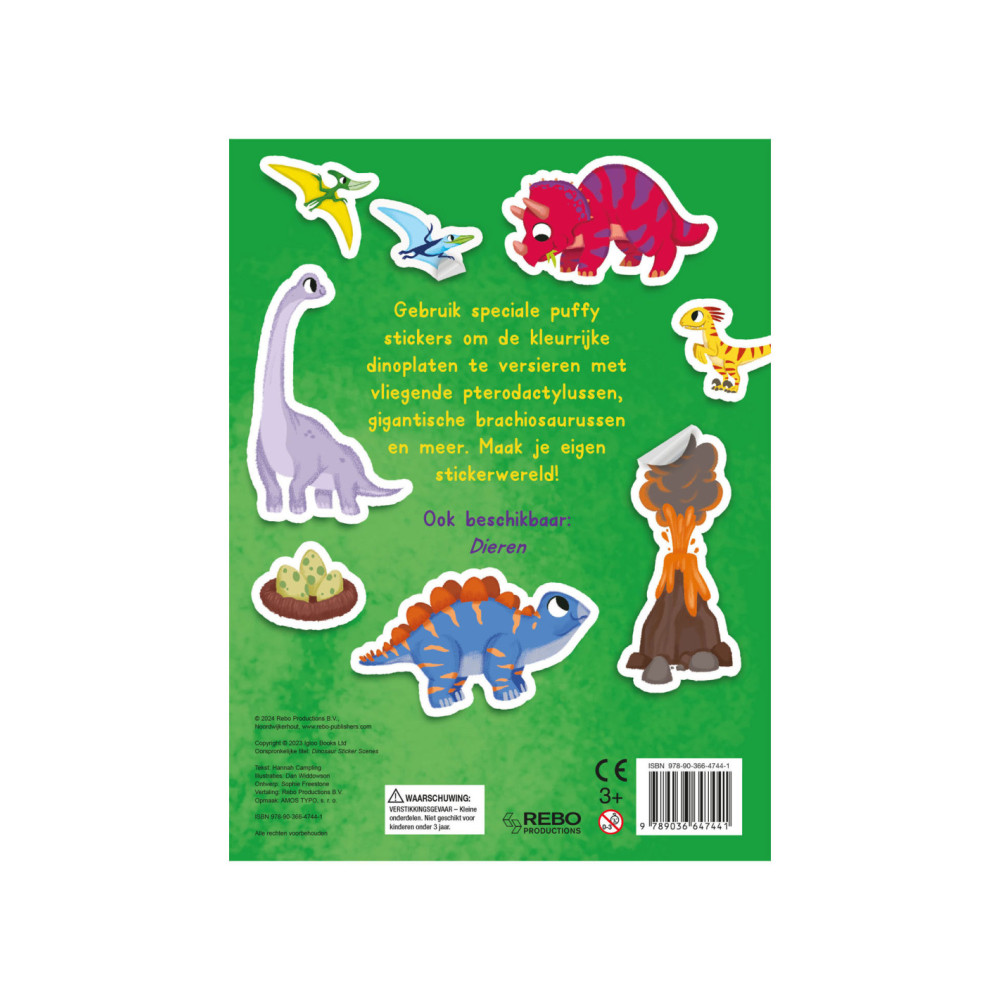 Gebruik speciale puffy stickers om kleurrijke dierenplaten te versieren met vliegende pterodactylussen, gigantische brachiosaurussen en meer. Maak je eigen stickerwereld! Ook verkrijgbaar in de variant met dieren. Geschikt vanaf 3 jaar.
