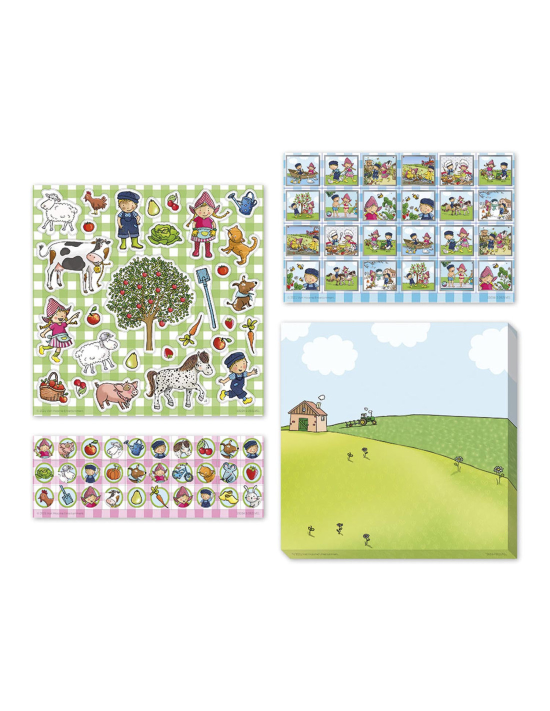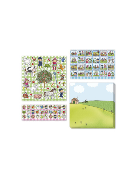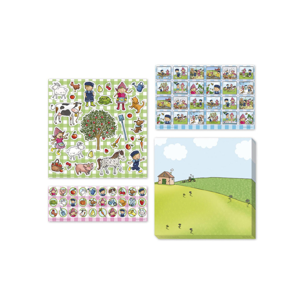 Fien & Teun stickerset met 3 vellen stickers en kartonnen speelachtergrond.