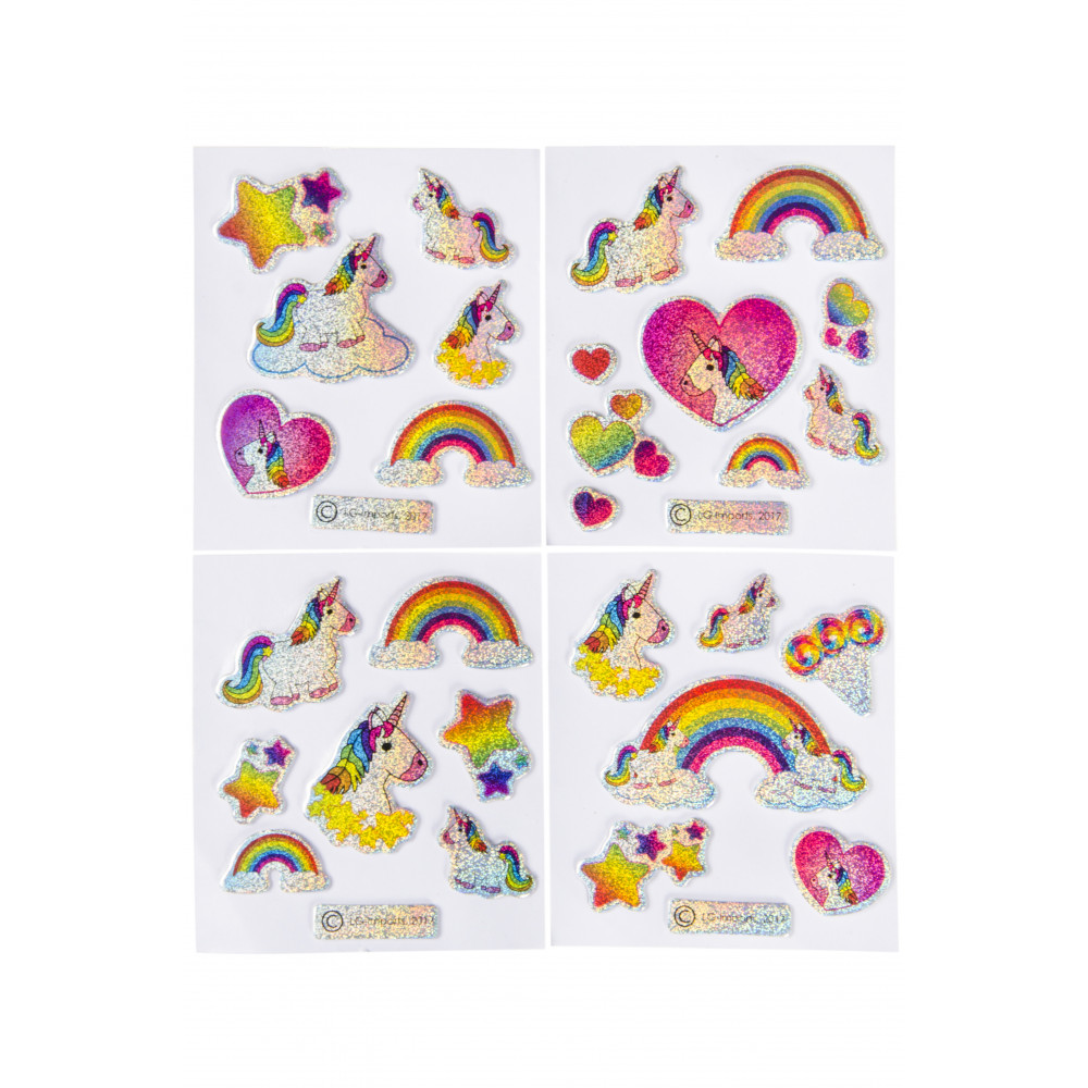De glitterstickers met eenhoorns zijn verkrijgbaar in vellen van verschillende uitvoeringen en worden willekeurig geleverd. Hierdoor blijft het elke keer weer een verrassing welke stickers je ontvangt. De stickers zijn van hoge kwaliteit en blijven lang plakken. Je kunt ze dus gerust op je favoriete spullen plakken zonder dat je bang hoeft te zijn dat ze snel loslaten.
