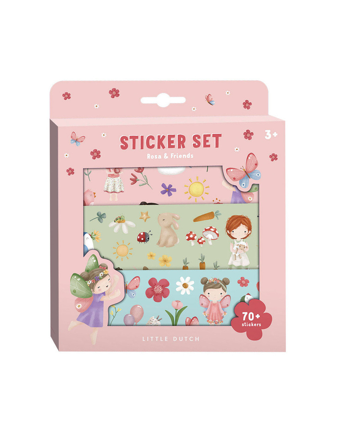 Little Dutch stickerdoosje met 3 vellen stickers met mooie illustraties van de serie ‘Rosa & Friends’. In de set zitten meer dan 70 stickers met mooie motieven van o.a. bloemen, bosdiertjes en elfjes. Geschikt voor kinderen vanaf 3 jaar oud.