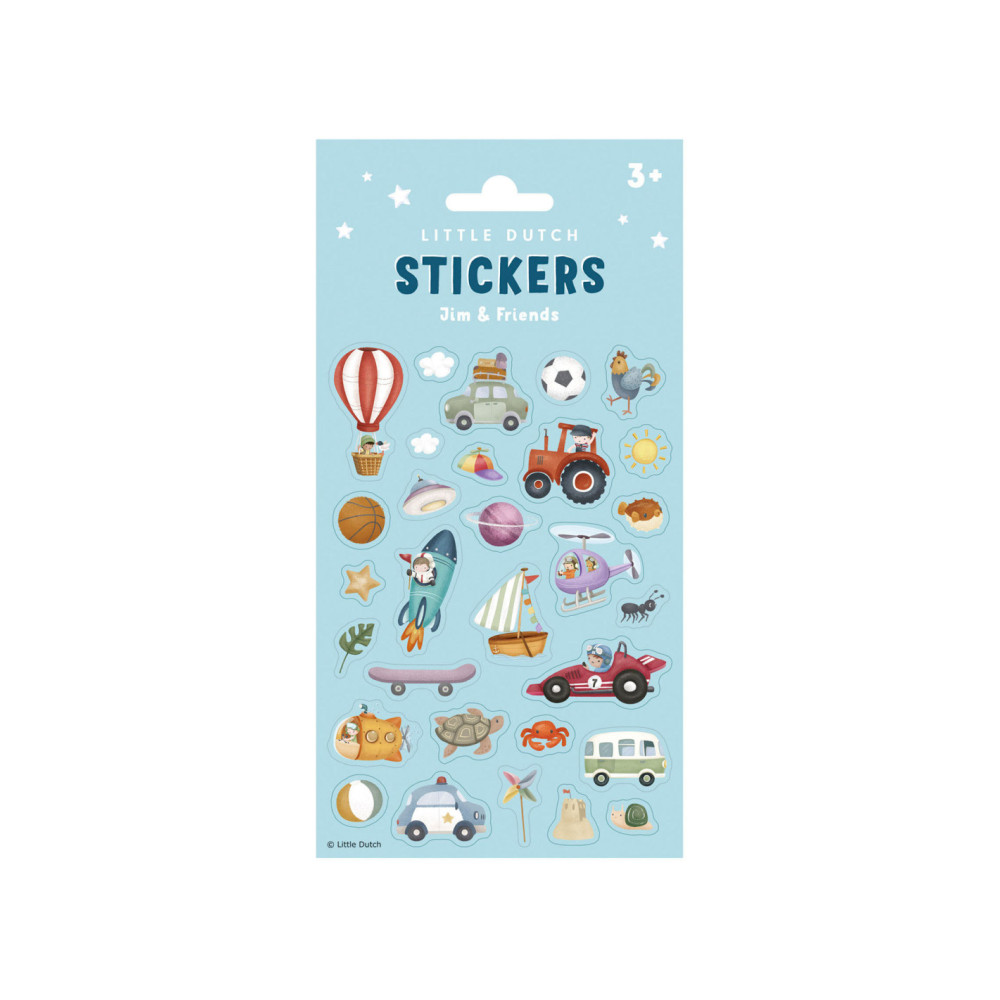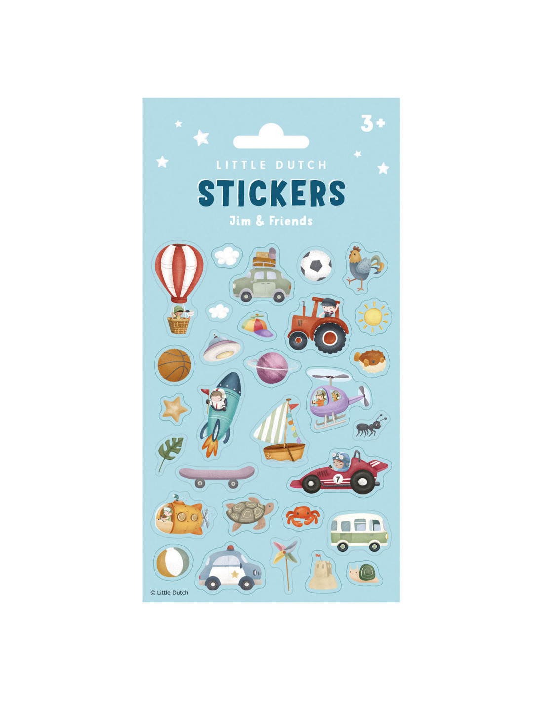 Stickervel van Jim & Friends van Little Dutch. De stickers hebben avontuurlijke motieven en mooie illustraties van dieren. Geschikt vanaf 3 jaar.