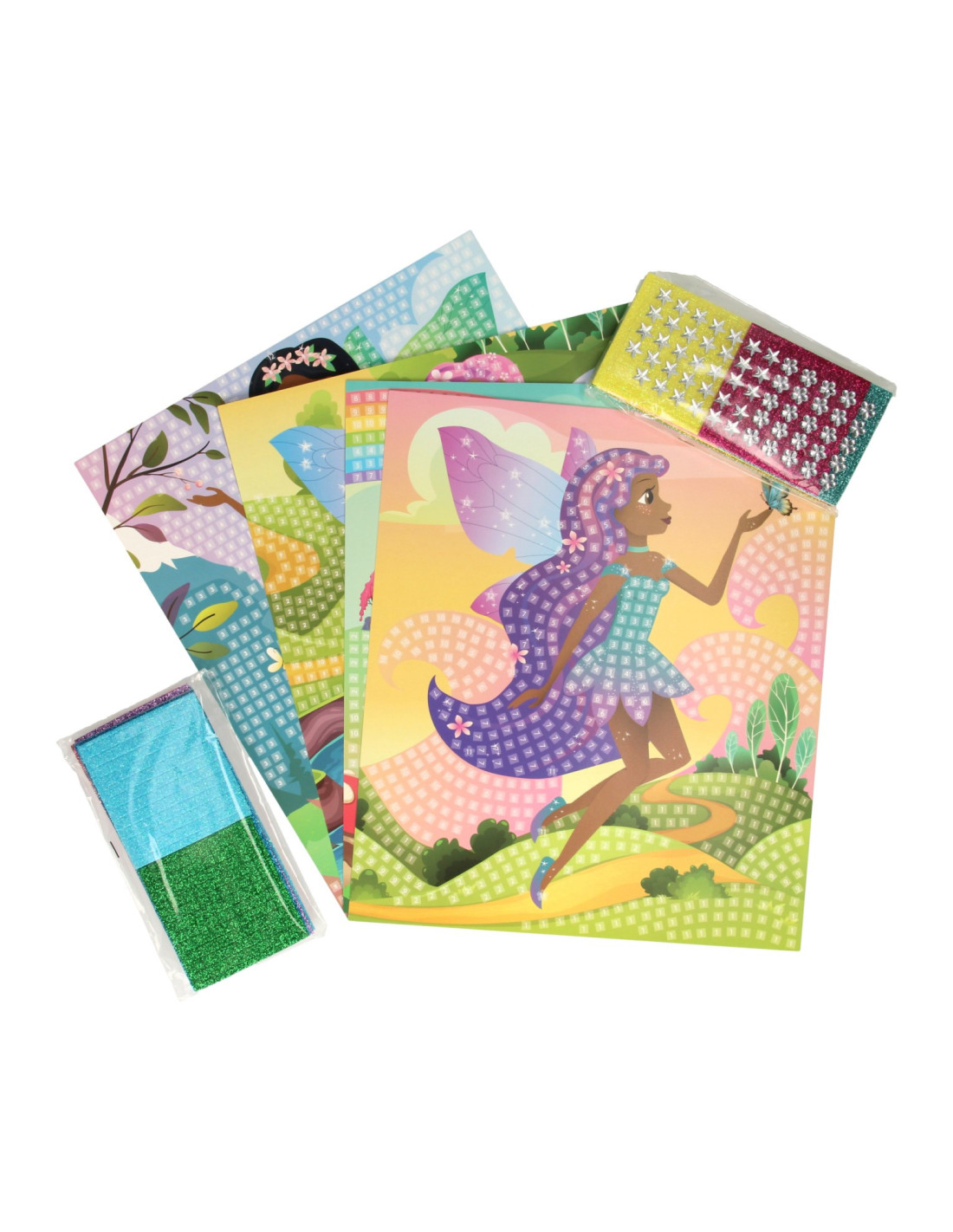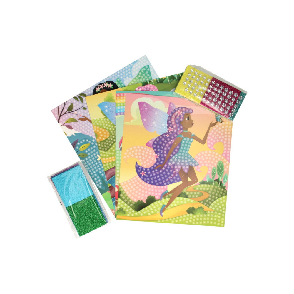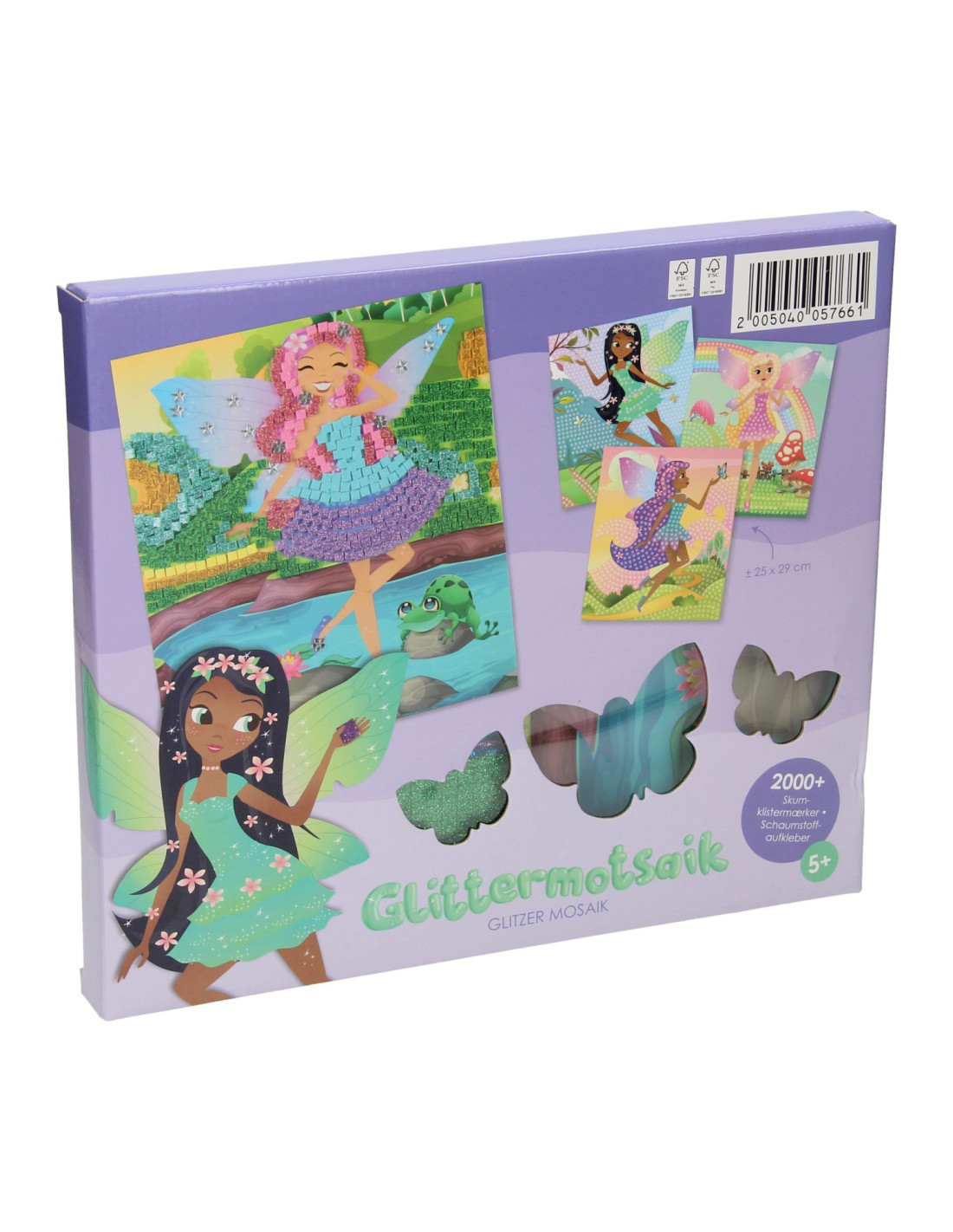 Mozaïek knutselset met 4 elfjesafbeeldingen en meer dan 2000 glinsterende mozaïekstickertjes. Geschikt voor kinderen vanaf 5 jaar oud.