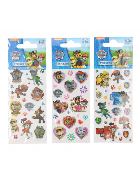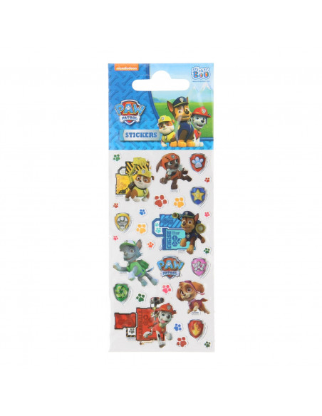 Stickervel met 20 Paw Patrol stickers. Verschillende uitvoeringen worden door elkaar geleverd.