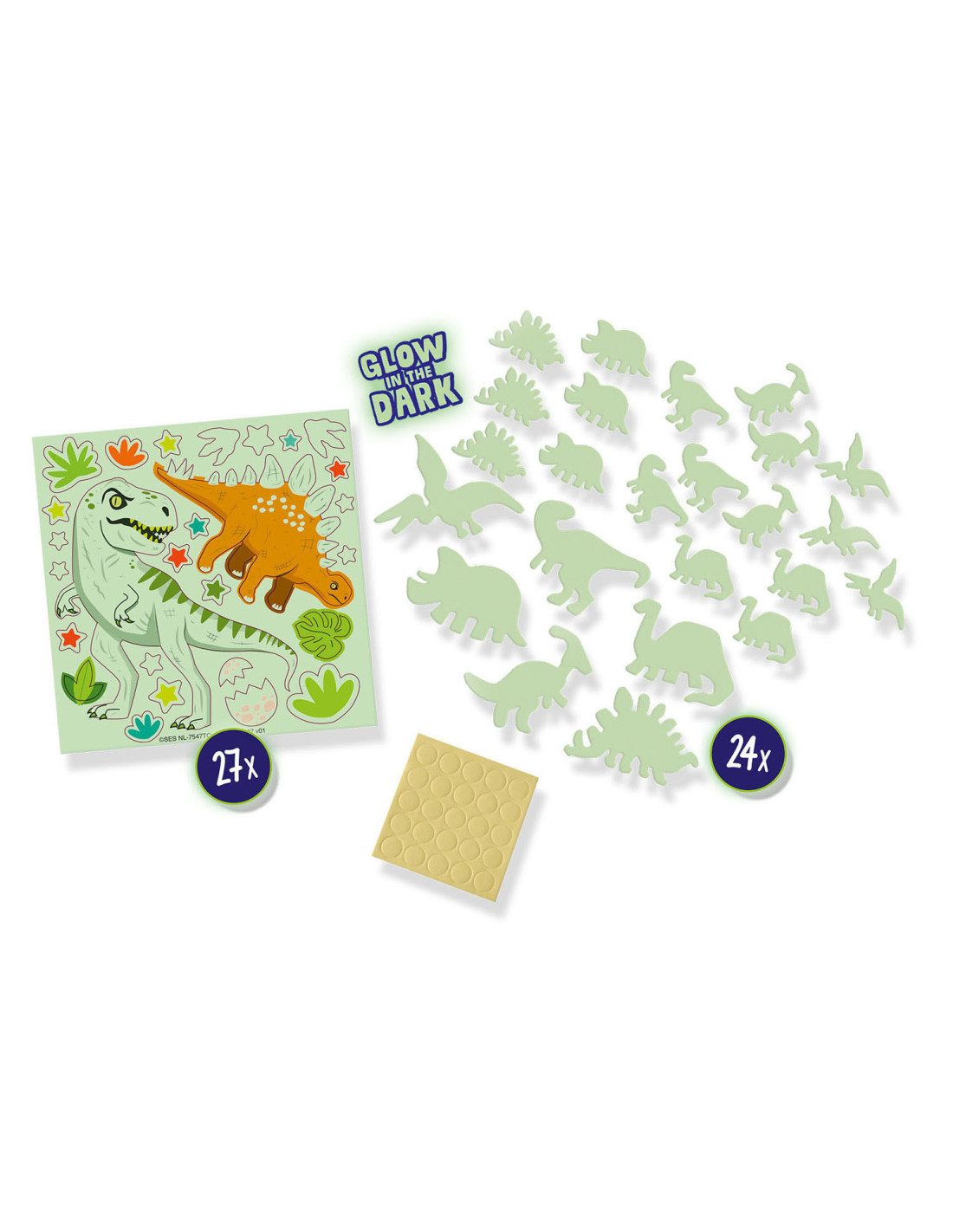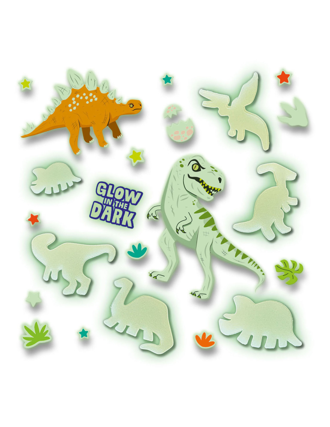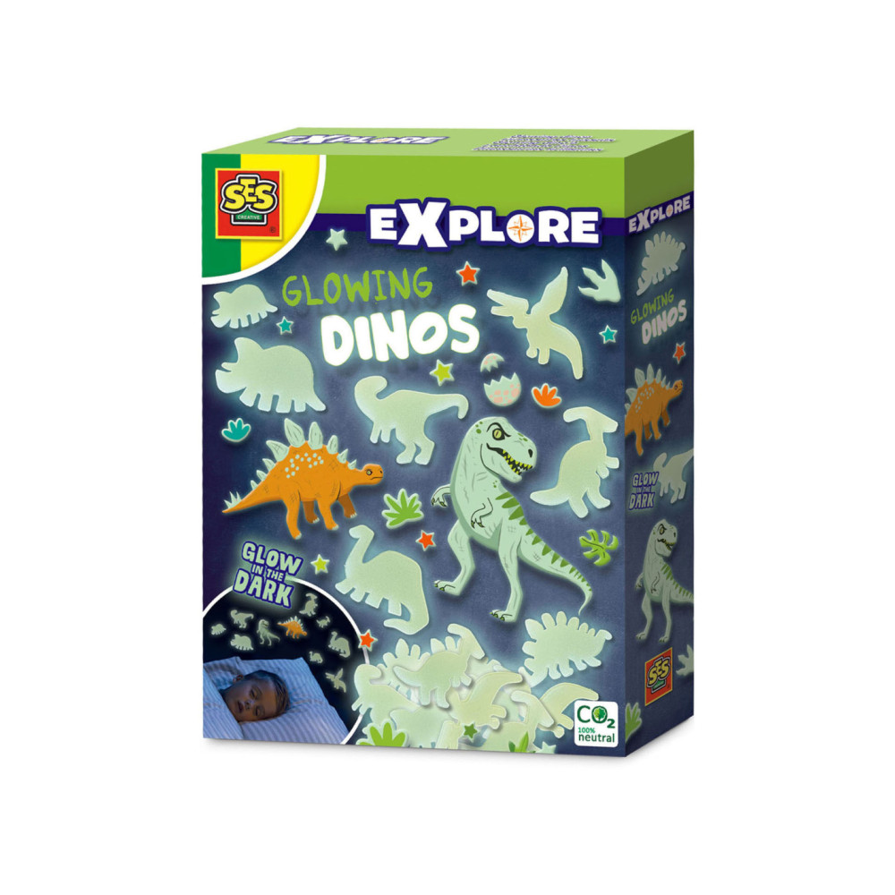 Met deze Glowing Dino’s tover jij jouw slaapkamer om tot een heus verlicht dinopark. Combineer jouw favoriete dino’s met elkaar en wacht tot het donker is om alle dino’s te zien oplichten. Deze set bestaat uit 24 dino stickers en dubbelzijdige foam plakkers die je kunt bevestigen aan de muur. Door het speciale Glow in the Dark effect komt jouw slaapkamer tot leven!