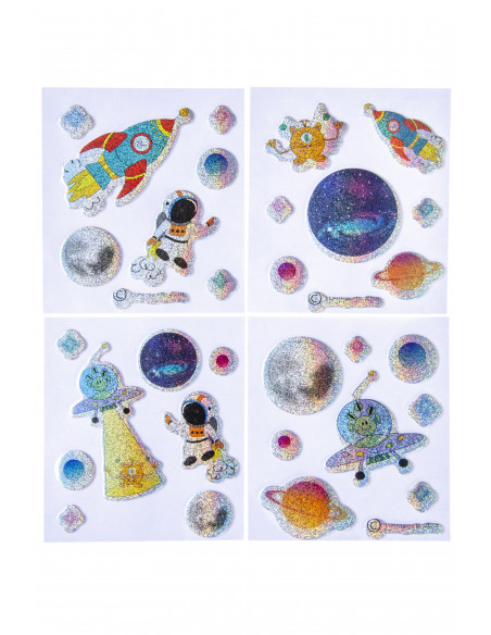 Dit setje met glinsterende ruimtevaartstickers is ook een leuk cadeau-idee voor vrienden en familie die geïnteresseerd zijn in de ruimtevaart of die graag hun persoonlijke spullen willen personaliseren. Bestel vandaag nog en voeg een vleugje kosmische flair toe aan uw dagelijks leven! Dit setje bestaat uit een bundel van 100 vellen met stickers.