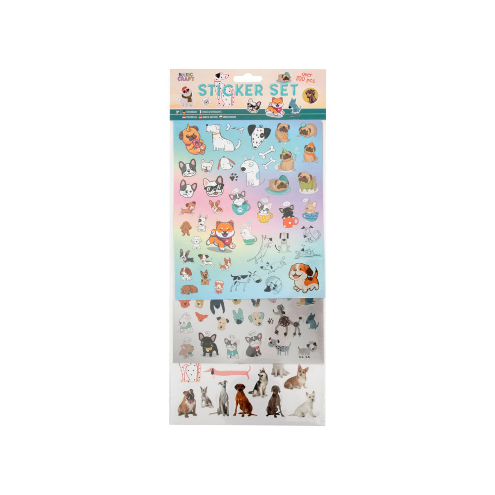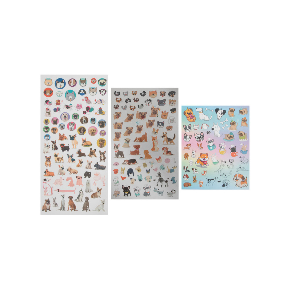 Stickerset met meer dan 100 stickers van honden, in cartoondesign en realistisch design. Geschikt vanaf 3 jaar.