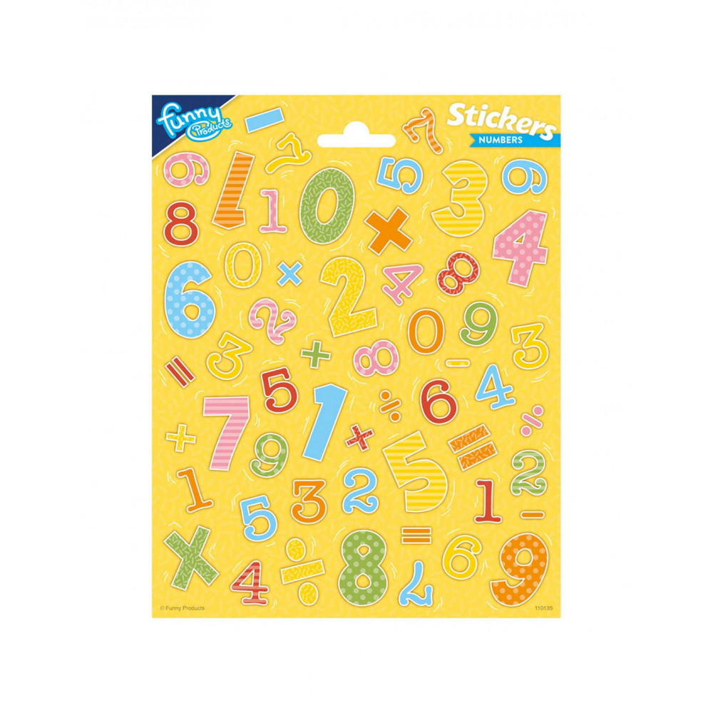Stickervel met verschillende getallen en speciale tekens.