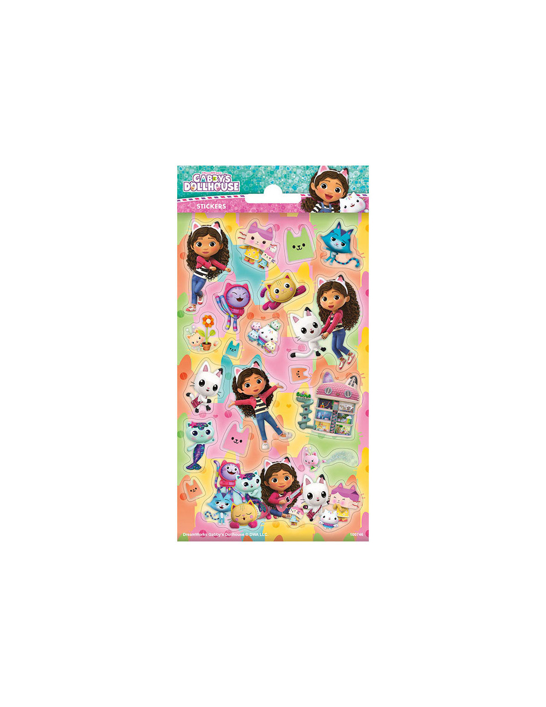 Dit betoverende stickervel bevat 17 glitterende stickers van de geliefde personages uit Gabby's Dollhouse, bekend van Netflix. Elk stickertje brengt de vrolijke wereld van Gabby tot leven met een sprankelende touch, waardoor ze perfect zijn om notitieboeken, tekeningen, en andere favoriete items te versieren.