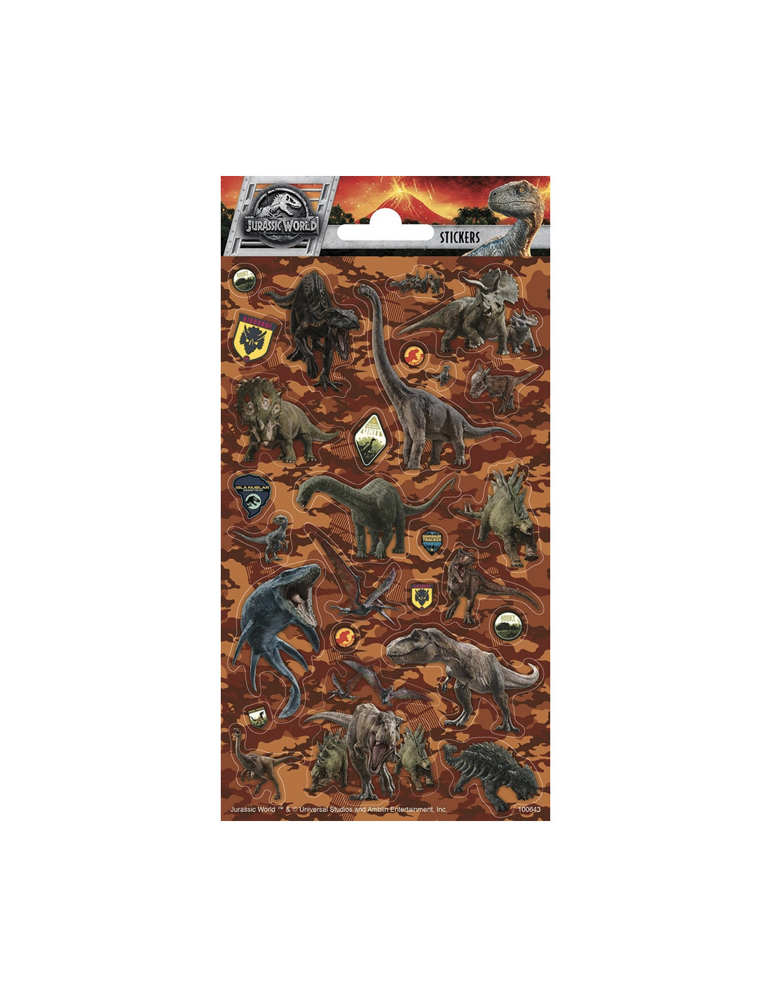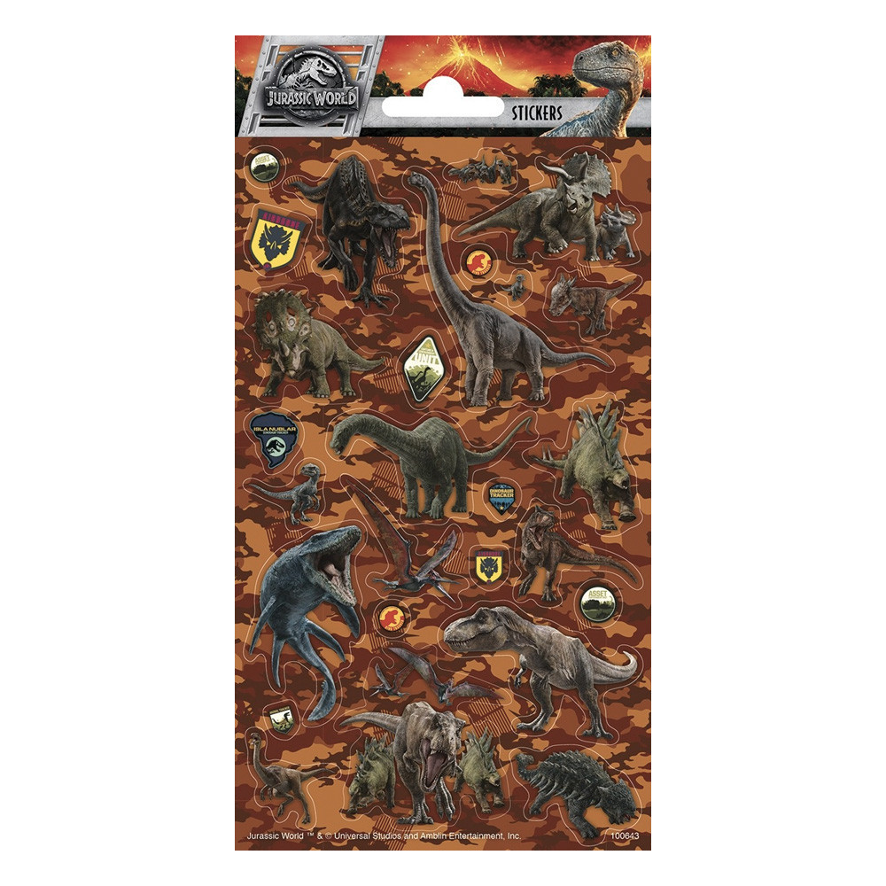 Stickervel Jurassic World met verschillende stickers.