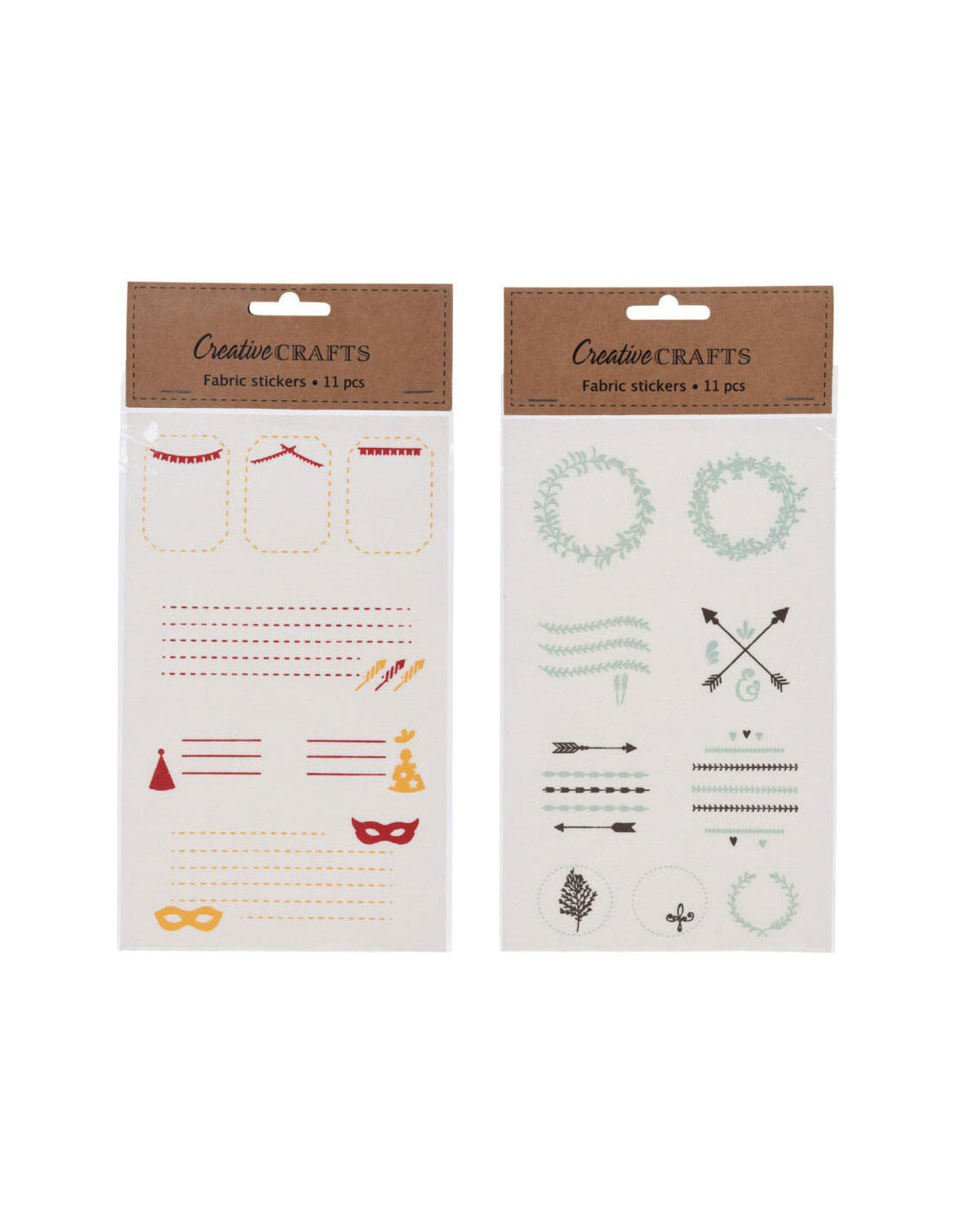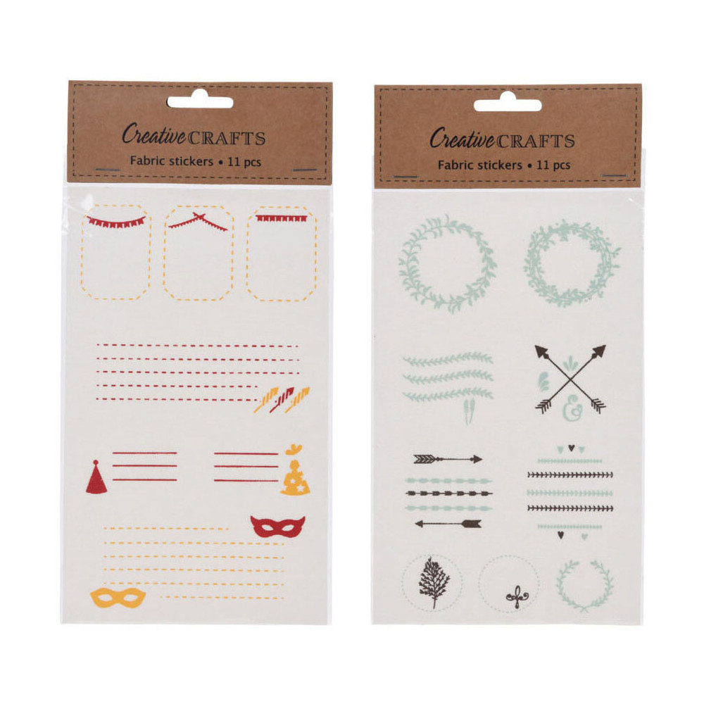 Set van 9 stoffen stickers in verschillende kleuren. De stickers hebben een rustige, neutrale print. De stickerset is geschikt voor kinderen vanaf 3 jaar.