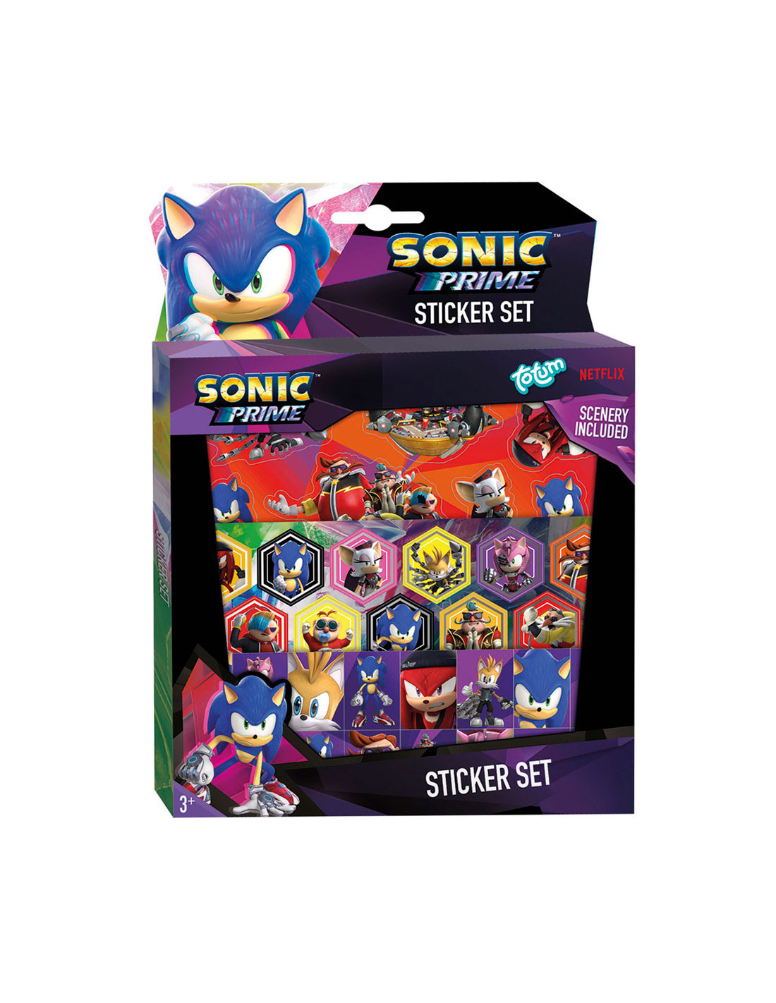 Stickerset van Sonic Prime, inclusief achtergrond om ze op te plakken. Geschikt vanaf 3 jaar.